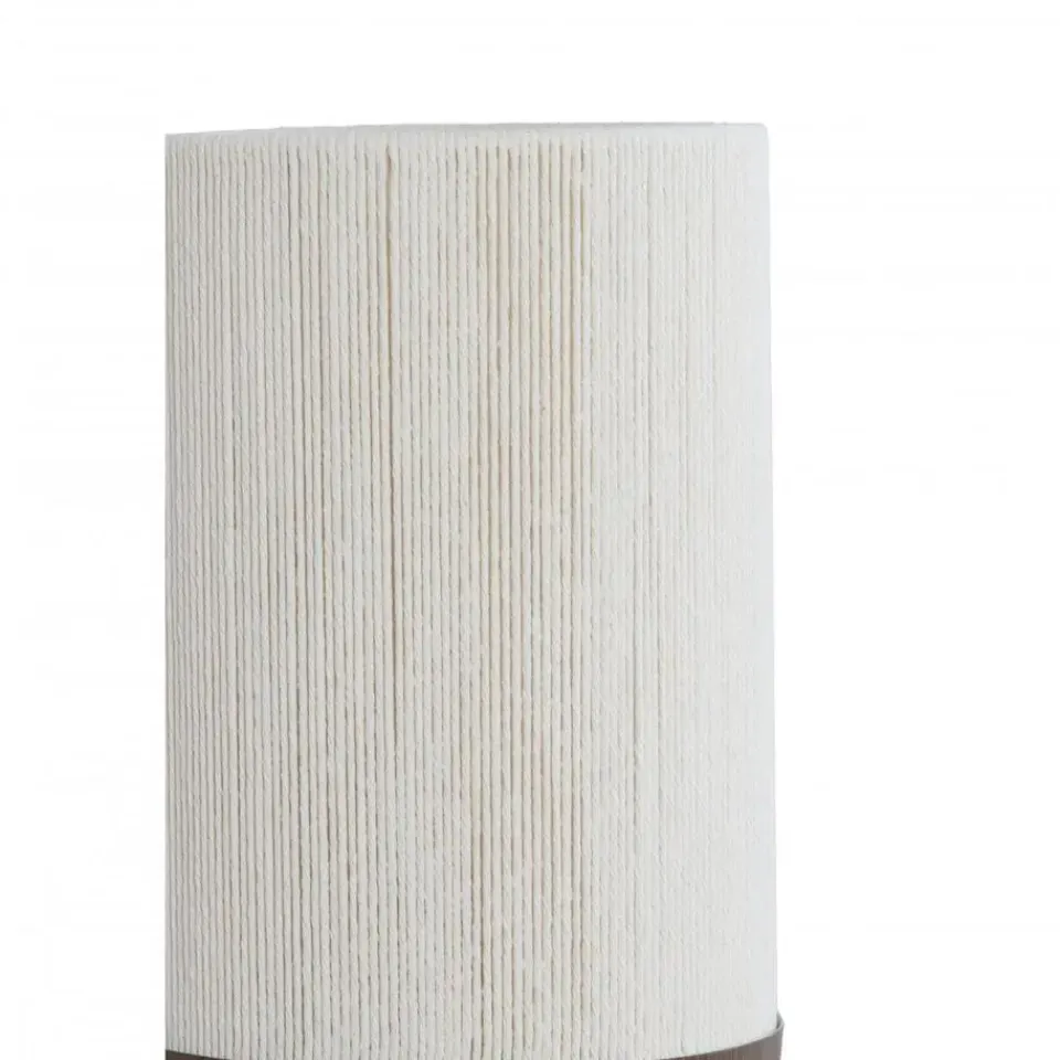 - Beige lampenkap, gemaakt van katoenen draden, voor diffuus sfeervol licht.