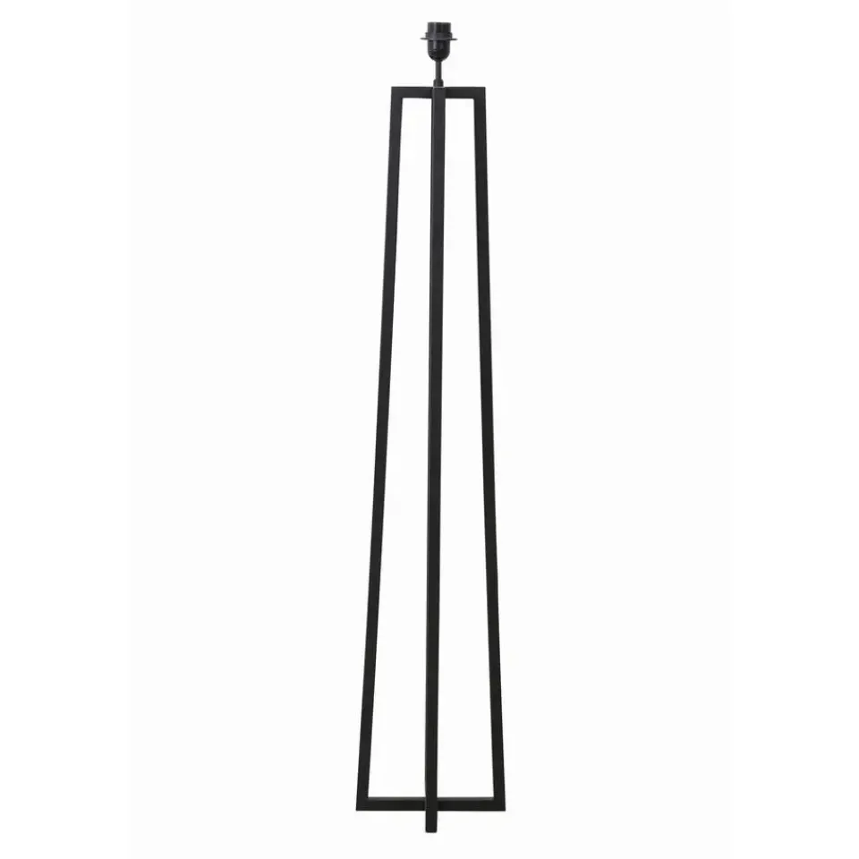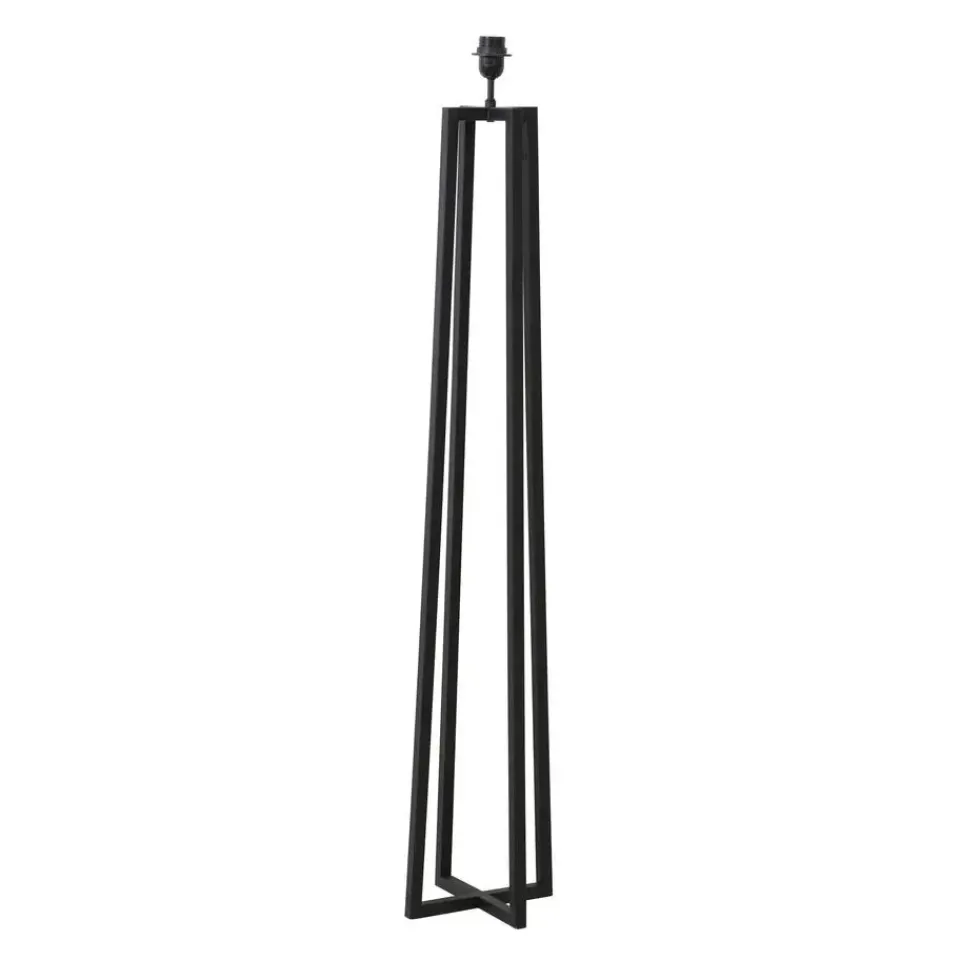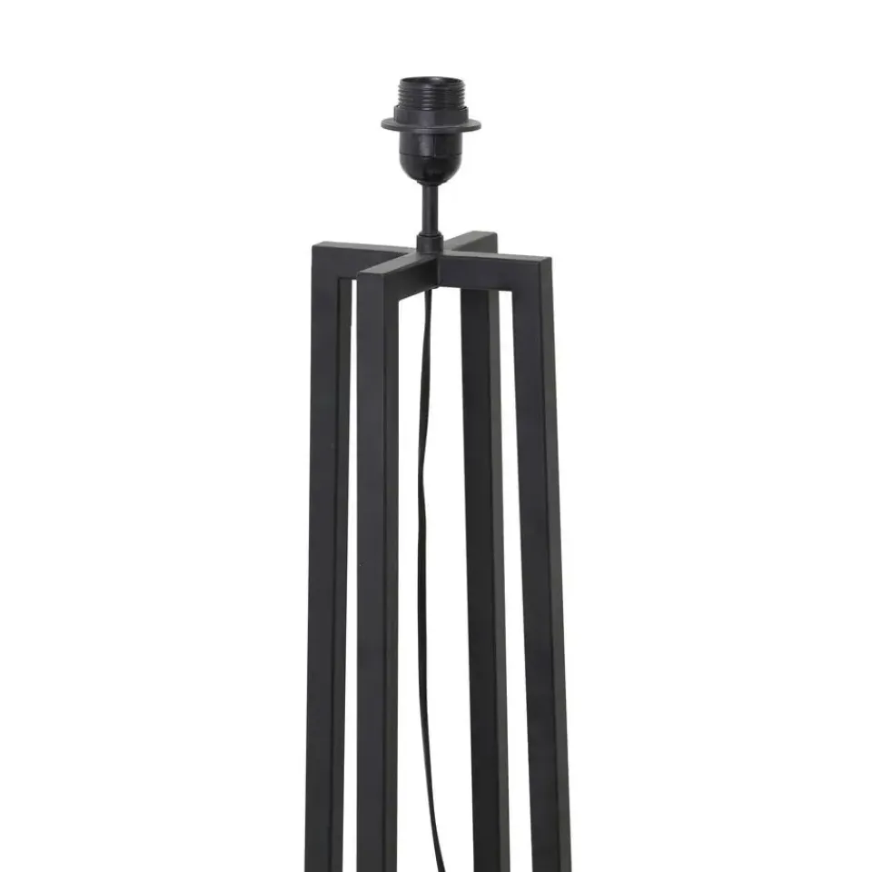 De Miley vloerlamp in matzwart heeft een unieke gekruiste metalen voet. Met afmetingen van 25x25x130 cm geeft hij een unieke touch aan je woonkamer. De vloerlamp wordt geleverd zonder lampenkap, zodat je de lamp kunt personaliseren met elke kap naar keuze, met een minimale breedte van 40 cm.