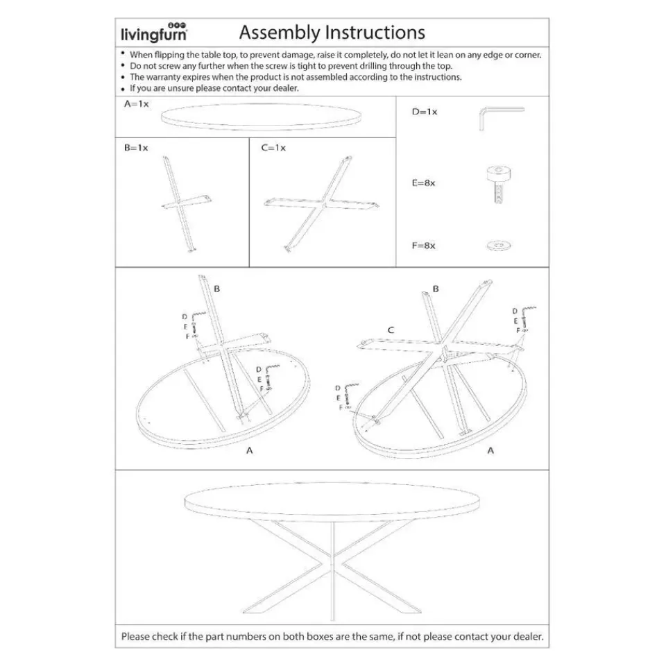 – Stevig stalen onderstel- Afmetingen: 150x150x78 cm– Onderstel: Spider Leg