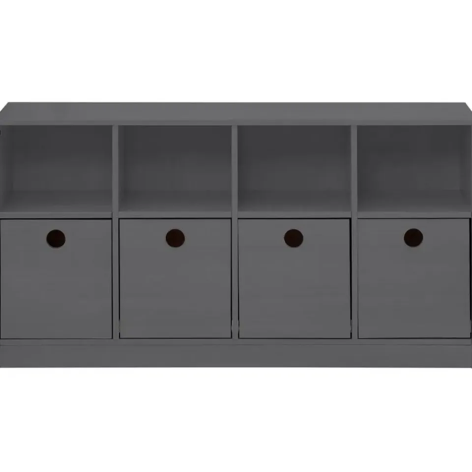 Boekenkast voor de kinderkamer van massief hout. De lades zijn volledig uittrekbaar en bieden extra opbergruimte. De puristische verzonken handgrepen zijn stabiel en slijten dus minder snel. Naast voldoende opbergruimte zijn er ook enkele handige accessoires om de avontuurlijke wereld van uw kind compleet te maken. Ter inspiratie: Comfortabele zitplaatsen en zachte tapijten maken het interieur van uw kind compleet. Haal een kwaliteitsmeubel in huis – met de boekenkast voor kinderen.