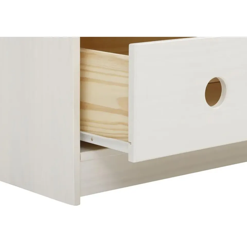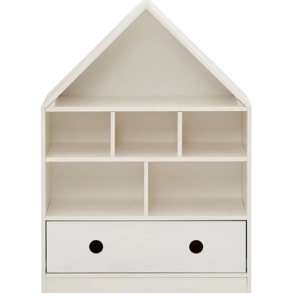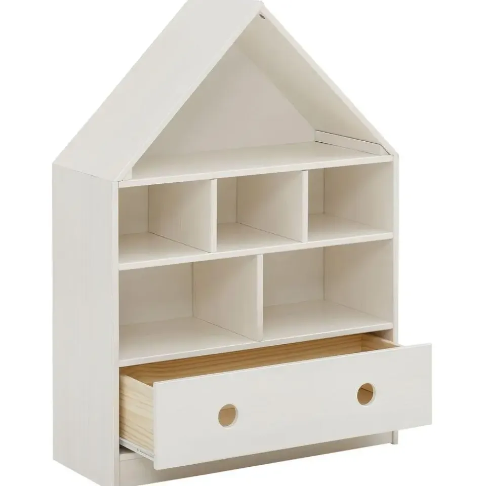 Met deze boekenkast voor kinderen van massief hout krijgt u een bijzonder duurzaam meubelstuk. De lades zijn volledig uittrekbaar en bieden extra opbergruimte. Het is gewaxt om het oppervlak minder gevoelig voor vuil te maken. Dit geeft het ook een lichte glans. De handgrepen zijn duurzaam en geven stijl. De maximale draagcapaciteit is 20 kilogram.