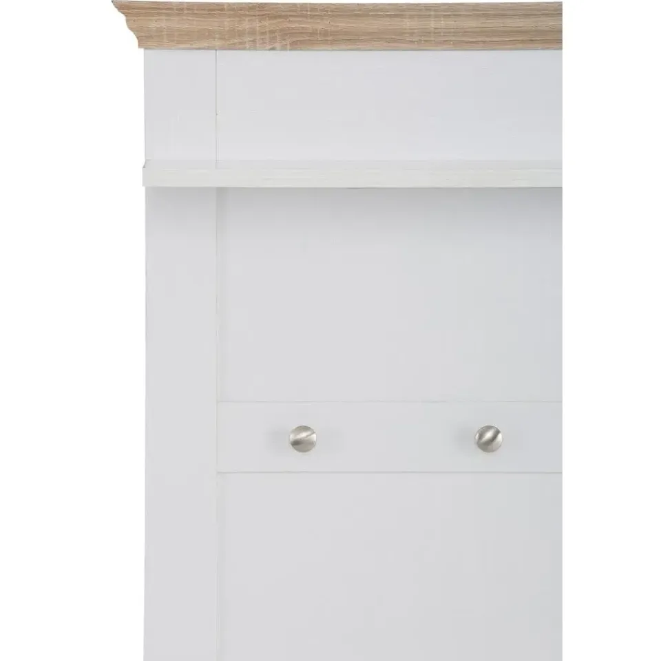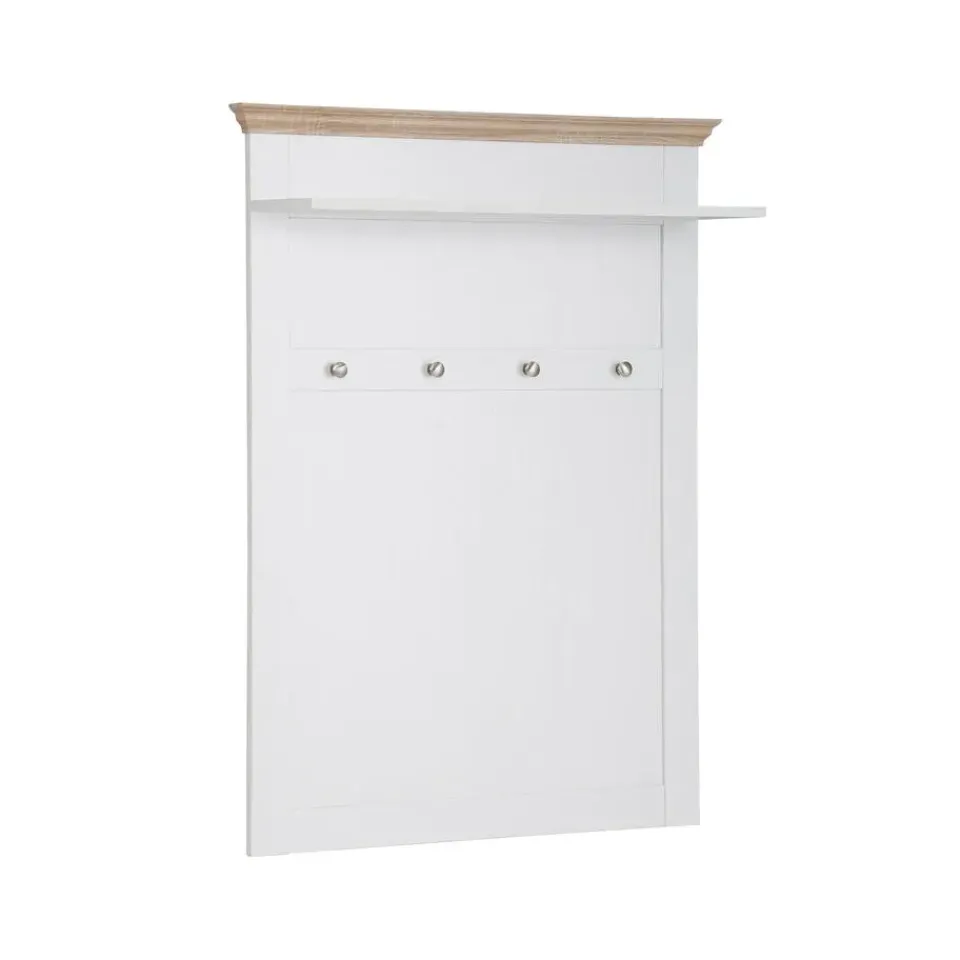 De wandkast is een modern kastpaneel in landelijke stijl. Met zijn chique houtlook en tactiele structuur creëert hij een natuurlijke en comfortabele entree. De hangende kapstok is een vriendelijke uitnodiging voor je gasten en familie om jassen, jacks, sjaals en meer op te hangen. Er zijn vier tijdloos mooie haken beschikbaar. De plank biedt precies de juiste hoeveelheid ruimte voor petten of hoeden. Dit aantrekkelijke entree-element is gemaakt van FSC®-gecertificeerd hout.