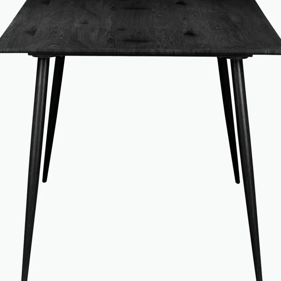 De hoogwaardige houten eettafel creëert een puristische sfeer in je eetkamer. Hij inspireert met zijn Scandinavische ontwerp en prachtige nerf. Het donkere metalen frame zorgt voor een aantrekkelijk contrast. De eettafel kan perfect gecombineerd worden met moderne en tijdloze meubels. Je kunt kiezen uit verschillende maten en kleuren, zodat je hem harmonieus kunt integreren in je bestaande interieur. Het eetmeubel heeft een stevig MDF-blad. Het heeft een onderhoudsvriendelijk oppervlak voor moeiteloze reiniging.