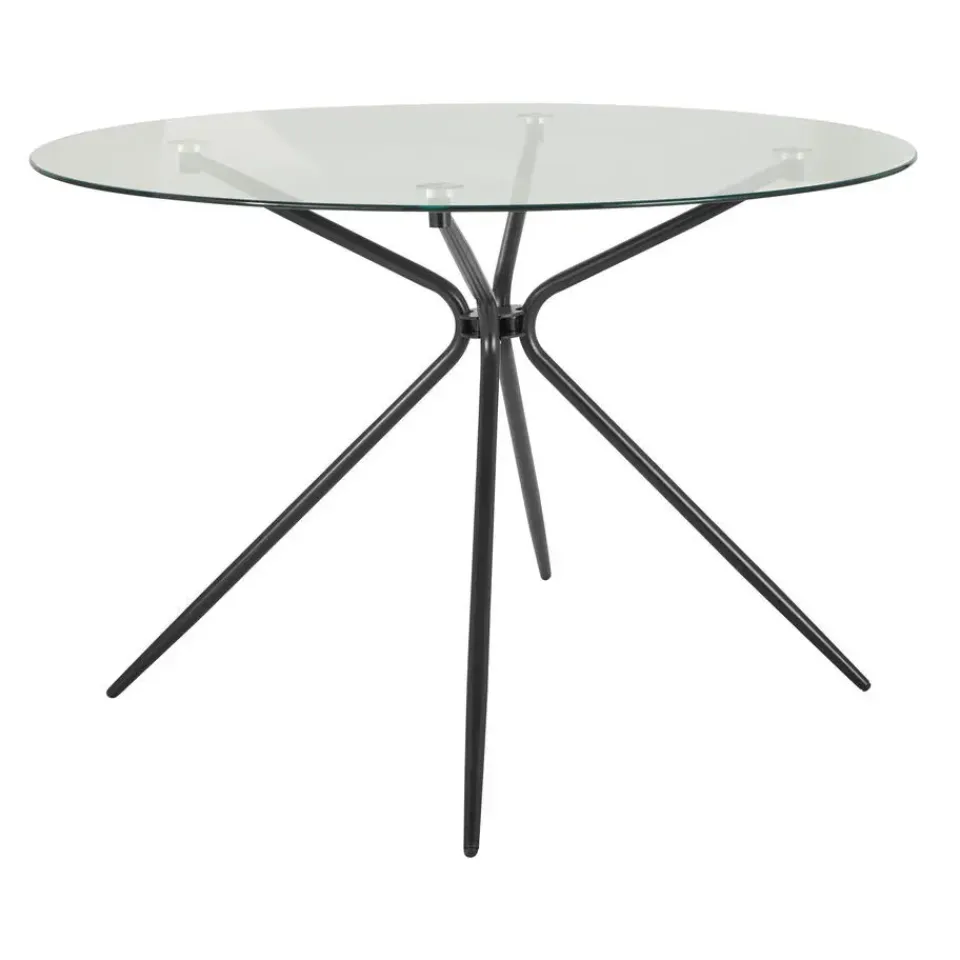 Een plek waar het hele gezin kan samenkomen: de ronde tafel met een moderne, elegante uitstraling. Het glazen tafelblad heeft een tijdloos design. Vier stevige metalen poten houden het tafelblad op zijn plaats. Er kunnen maximaal vier mensen comfortabel aan zitten. De tafelpoten zijn verkrijgbaar in twee kleuren.
