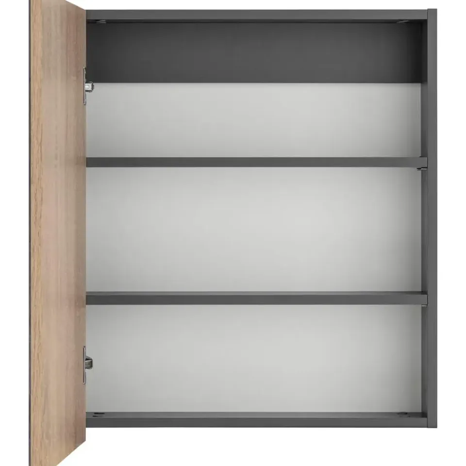 De wandspiegelkast voor de badkamer maakt je badkamer compleet. Het biedt veel opbergruimte voor verzorgingsproducten en cosmetica achter één deur met drie planken. Het badkamermeubel heeft een moderne uitstraling. Het wordt gekenmerkt door solide afwerking en praktische eigenschappen. Het is uitgerust met onderhoudsvriendelijke oppervlakken en heeft verstelbare planken Verkrijgbaar in verschillende kleuren.