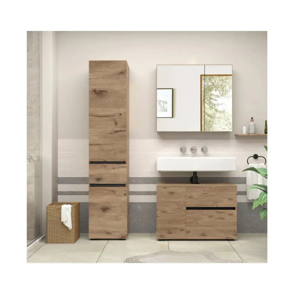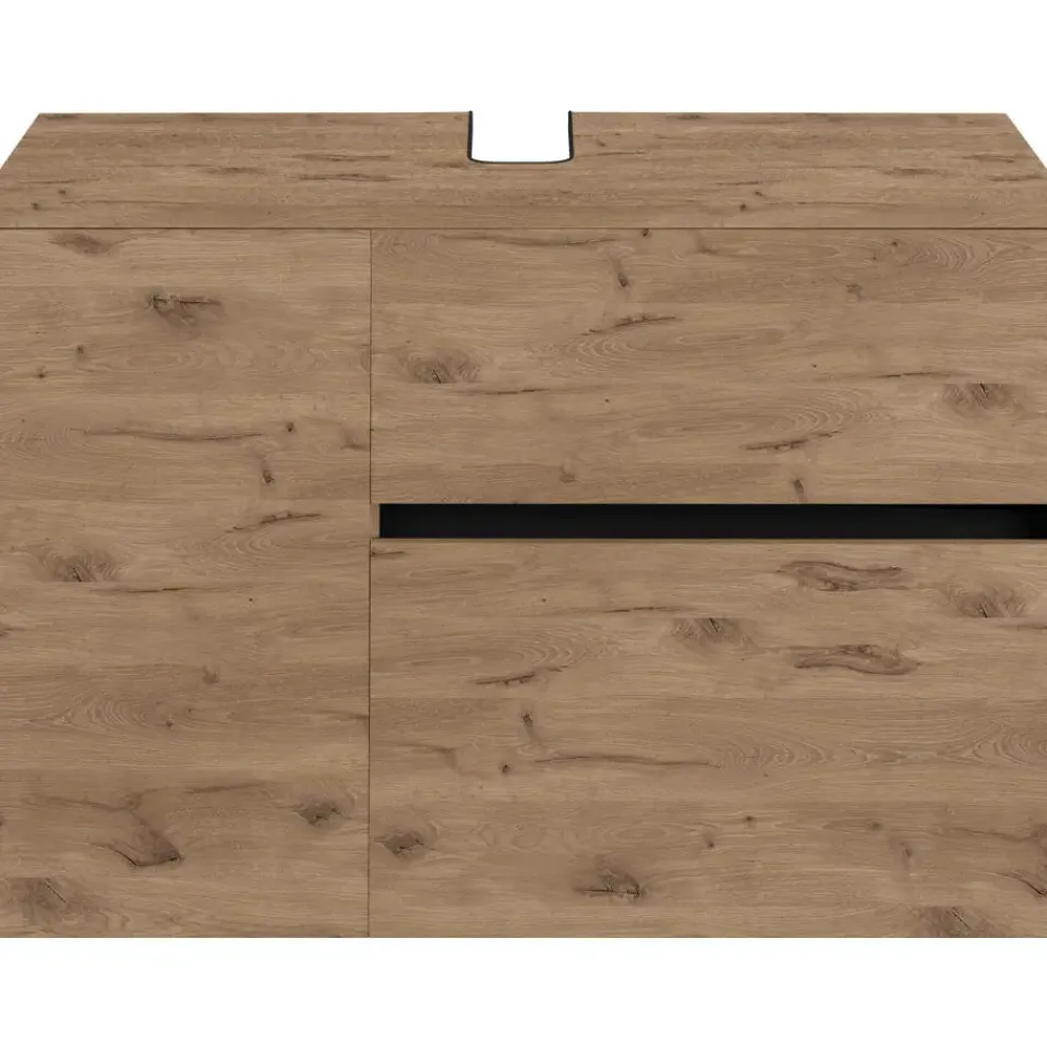 Dit badmeubel met sifonuitsparing past netjes in de badkamer en biedt extra opbergruimte voor handdoeken of toiletartikelen. Met de praktische push-to-open functie gaan de moderne, greeploze deuren automatisch open met een snelle druk en gaan ze weer open met een simpele tik. De lades zijn volledig uittrekbaar en bieden extra opbergmogelijkheden.