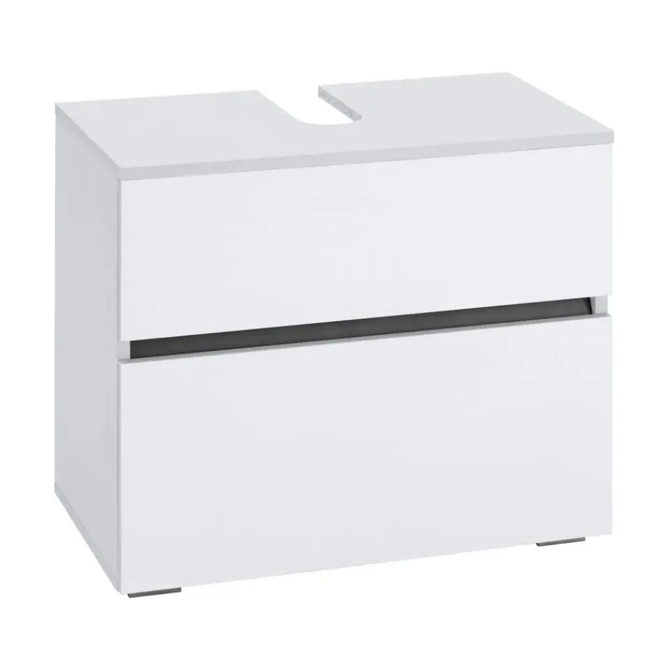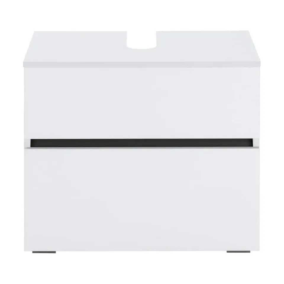 Het tweekleurige badmeubel creëert een moderne sfeer in je badkamer of gastentoilet. Het wordt geleverd met een lineaire designtaal en kan gemakkelijk worden geïntegreerd in je huis. De voorkant van het badkamermeubel heeft geen handgrepen, wat het elegante houtdecor perfect accentueert. De klep en lade kunnen eenvoudig worden geopend met de handige pushtoopen-functie. Het bovenpaneel heeft een praktische uitsparing voor de sifon. Verder verbergt het de aansluitinstallatie van de wastafel voor een gesloten look. Het badkamermeubel is uitgerust met vlakke vierkante poten van kunststof en de romp en fronten zijn gemaakt van FSC®-gecertificeerde houtmaterialen die onderhoudsvriendelijke oppervlakken te bieden hebben. Verkrijgbaar in verschillende kleuren.