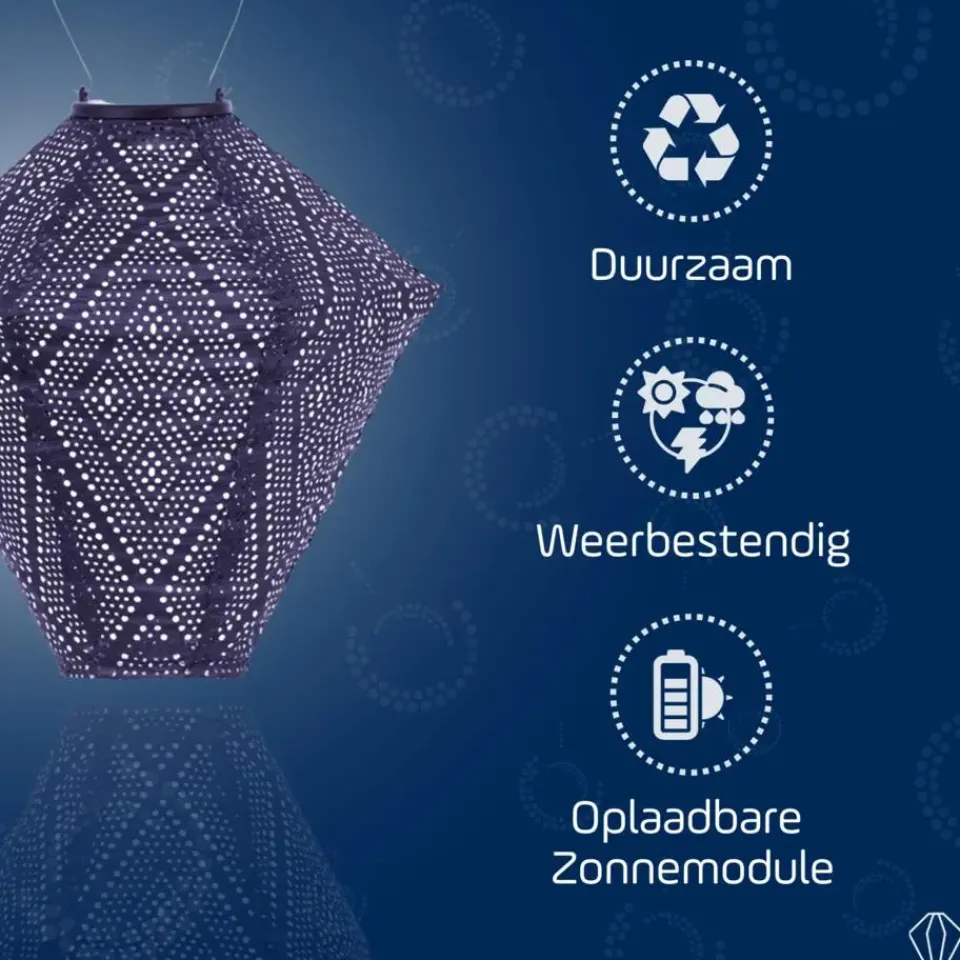 De Lumiz Solar Buitenlamp is ontworpen met zowel esthetiek als duurzaamheid in gedachten. De lampion is gemaakt van Tyvek, een sterk, weerbestendig en 100% recyclebaar materiaal dat lang meegaat. Bovendien geeft de lampion een warm LED licht dat perfect is voor het creëren van een gezellige en sfeervolle ambiance in jouw tuin.
