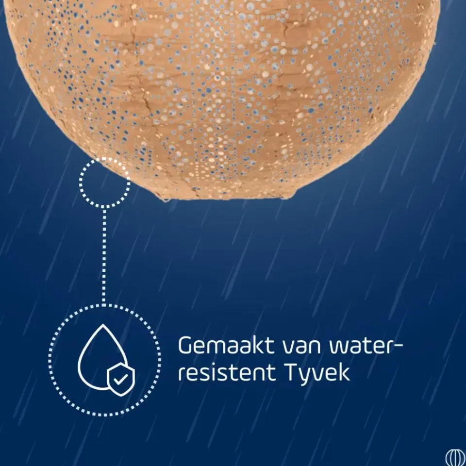 - De Buitenlamp is vervaardigd uit Tyvek, een sterk, weerbestendig en duurzaam 100% recyclebaar materiaal.