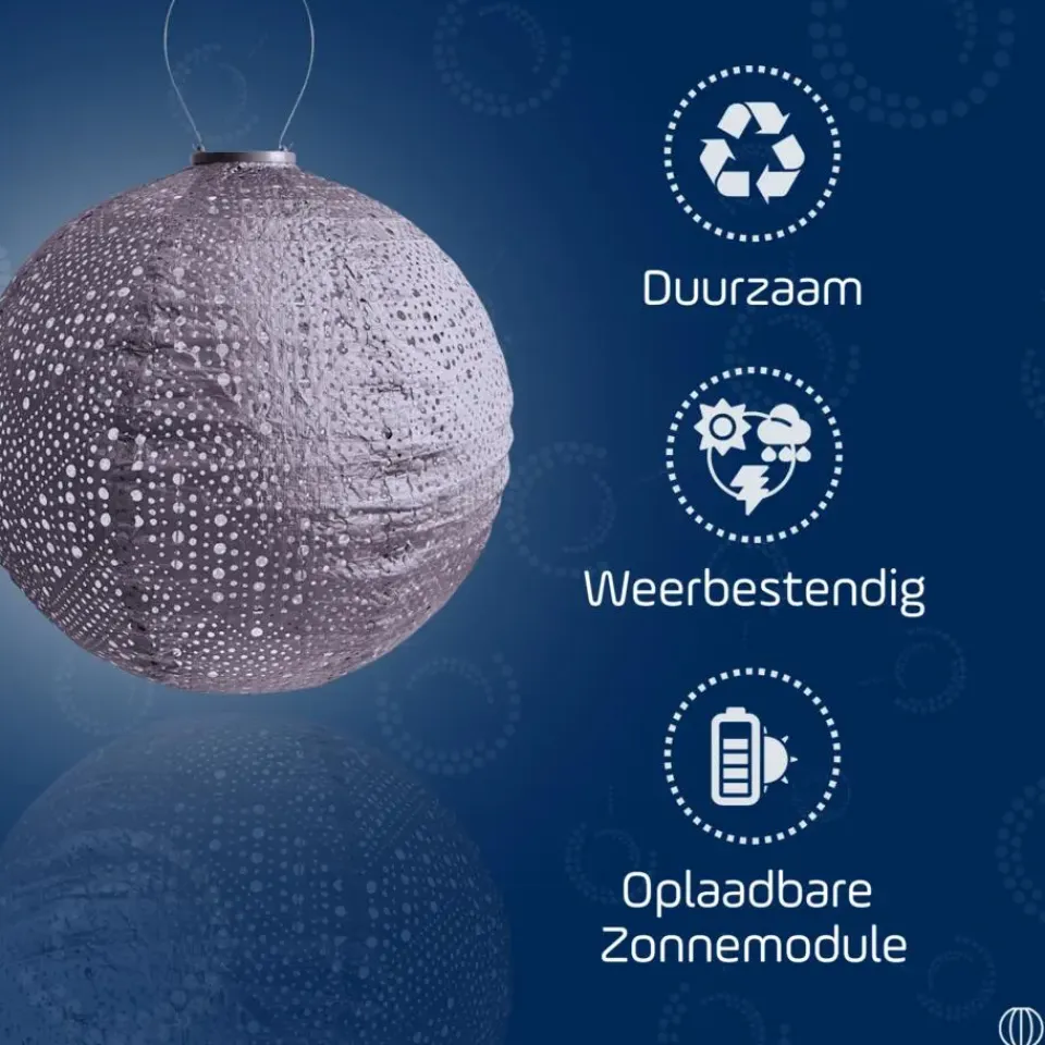 De Lumiz Solar Buitenlamp is ontworpen met zowel esthetiek als duurzaamheid in gedachten. De lampion is gemaakt van Tyvek, een sterk, weerbestendig en 100% recyclebaar materiaal dat lang meegaat. Bovendien geeft de lampion een warm LED licht dat perfect is voor het creëren van een gezellige en sfeervolle ambiance in jouw tuin.