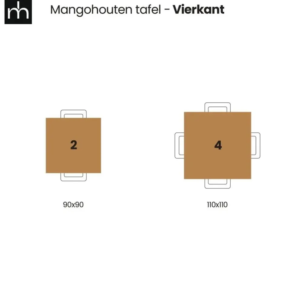Naast de 110×110 cm uitvoering is deze tafel ook verkrijgbaar in een kleinere 90×90 cm versie. Bovendien is de Nova eettafel leverbaar in een elegante donkerbruine kleur voor wie op zoek is naar extra warmte en diepte in het interieur.
