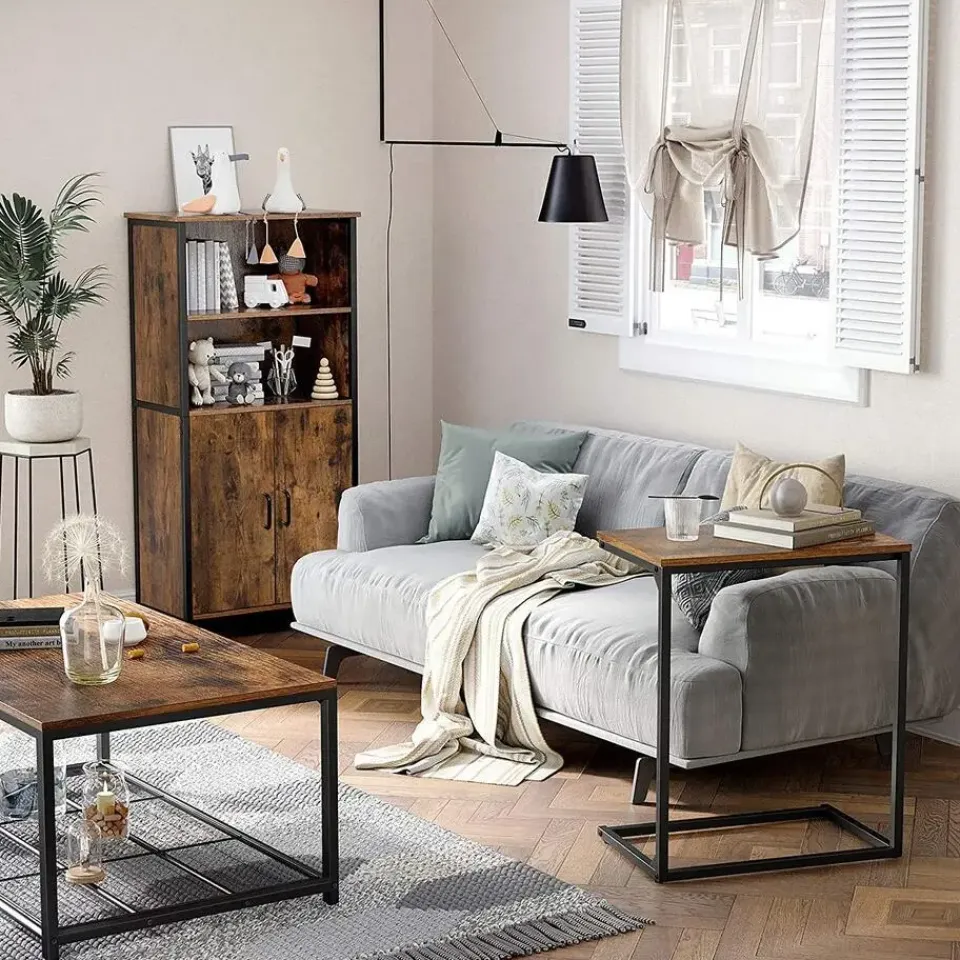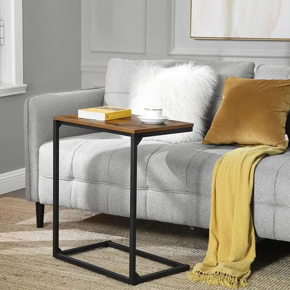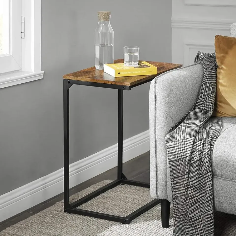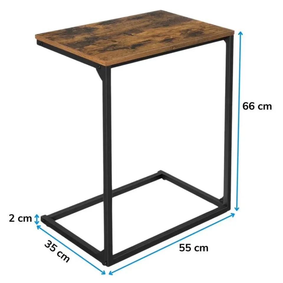Met dit bijzettafeltje heeft u steeds uw favoriete snacks, magazines of boeken bij de hand. Wilt uw e-mails snel controleren vanuit uw bed of op uw bank? Geen probleem, met dit bijzettafeltje kan het allemaal! De tafel heeft een vintage bruin oppervlak en een mat zwart stalen frame. Opgepast, wanneer u het bijzettafeltje onder uw bank of bed schuift, mag het stalen frame niet over uw vloer slepen. Daarom heeft deze bijzettafel verstelbare poten die ook oneffenheden compenseren. Het max. draagvermogen is 20 kg.