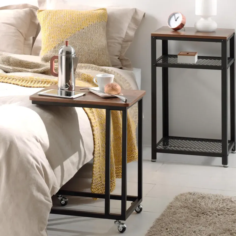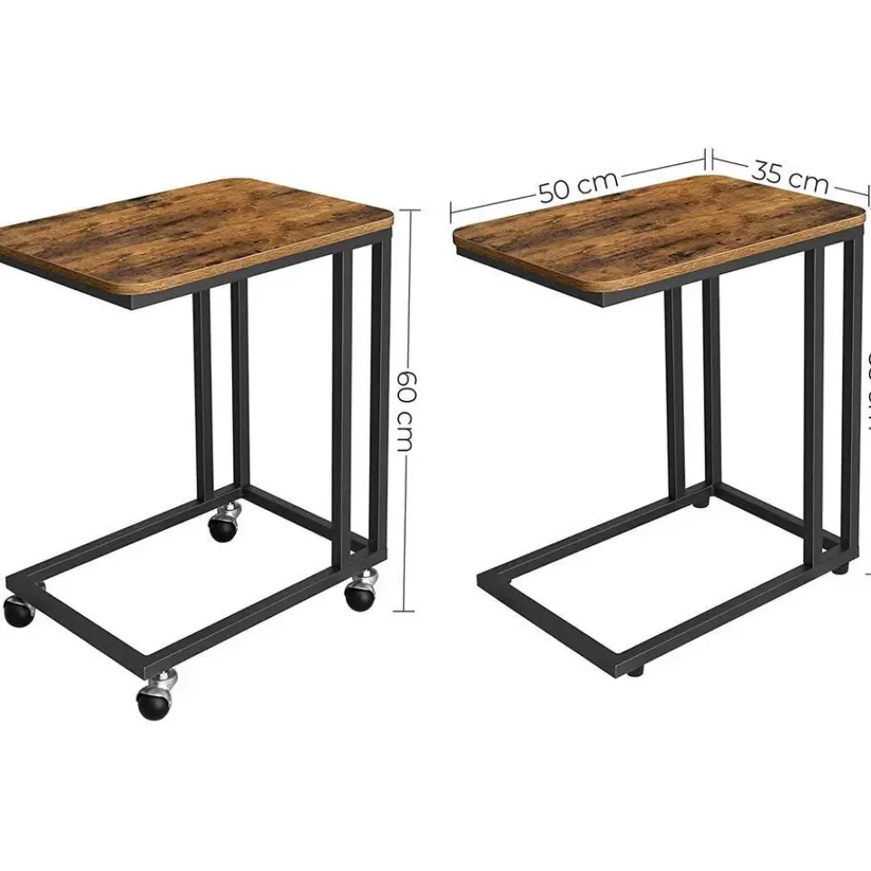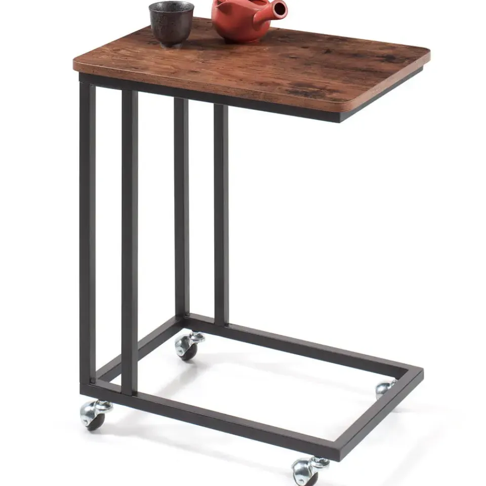 Praktisch, esthetisch en veelzijdig, dat zijn drie zeer specifieke kenmerken van deze bijzettafel! De wielen maken het gemakkelijk om zich te verplaatsen. Het is echter ook mogelijk om de wielen te vervangen door de meegeleverde poten. Door de afmetingen van 50×35 cm en het draagvermogen van 25 kg kunt u er uw favoriete hapjes, tijdschriften of boeken op plaatsen. Uw laptop is ook welkom op deze bijzettafel!