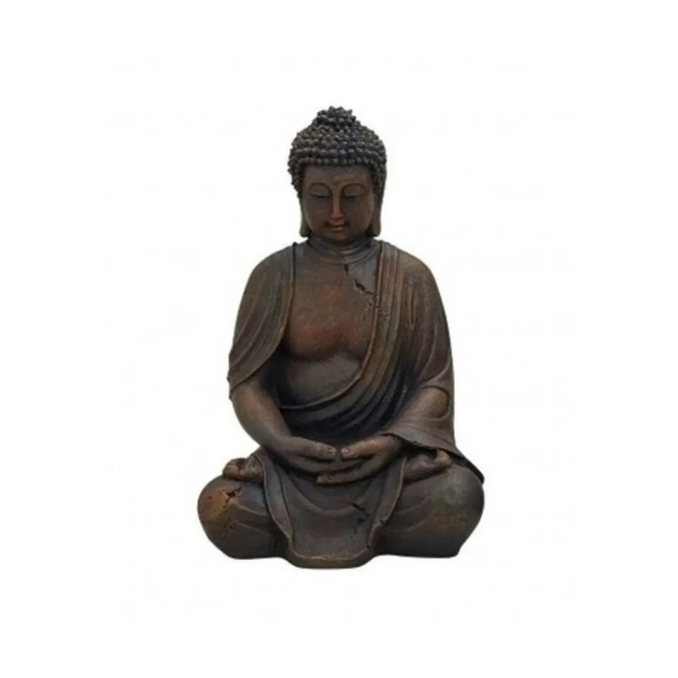 Boeddha beeld bruin. Dit bruine boeddha decoratiebeeld heeft een formaat van ongeveer 30 cm en is gemaakt van polystone.