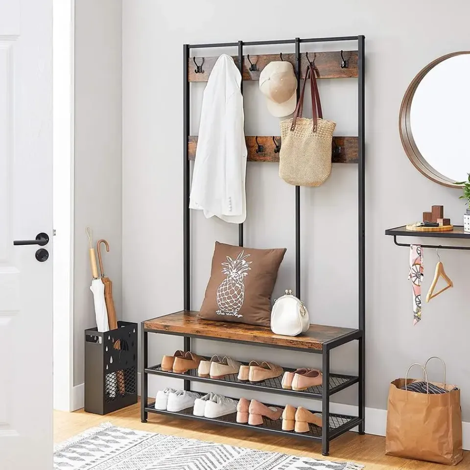 Met twaalf haken en twee legbladen voor schoenen kan je alvast het een en ander verzamelen. Sjaals, jassen, schoenen, hoeden, tassen, haast alles kan voortaan op één en dezelfde plek!