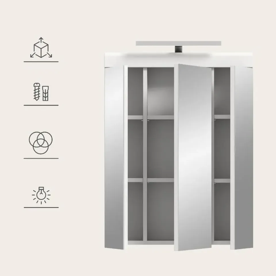 Merkloos Hioshop Scout spiegelkast inclusief verlichting 2 deuren- 3 spiegeldeuren- 3 Clearance