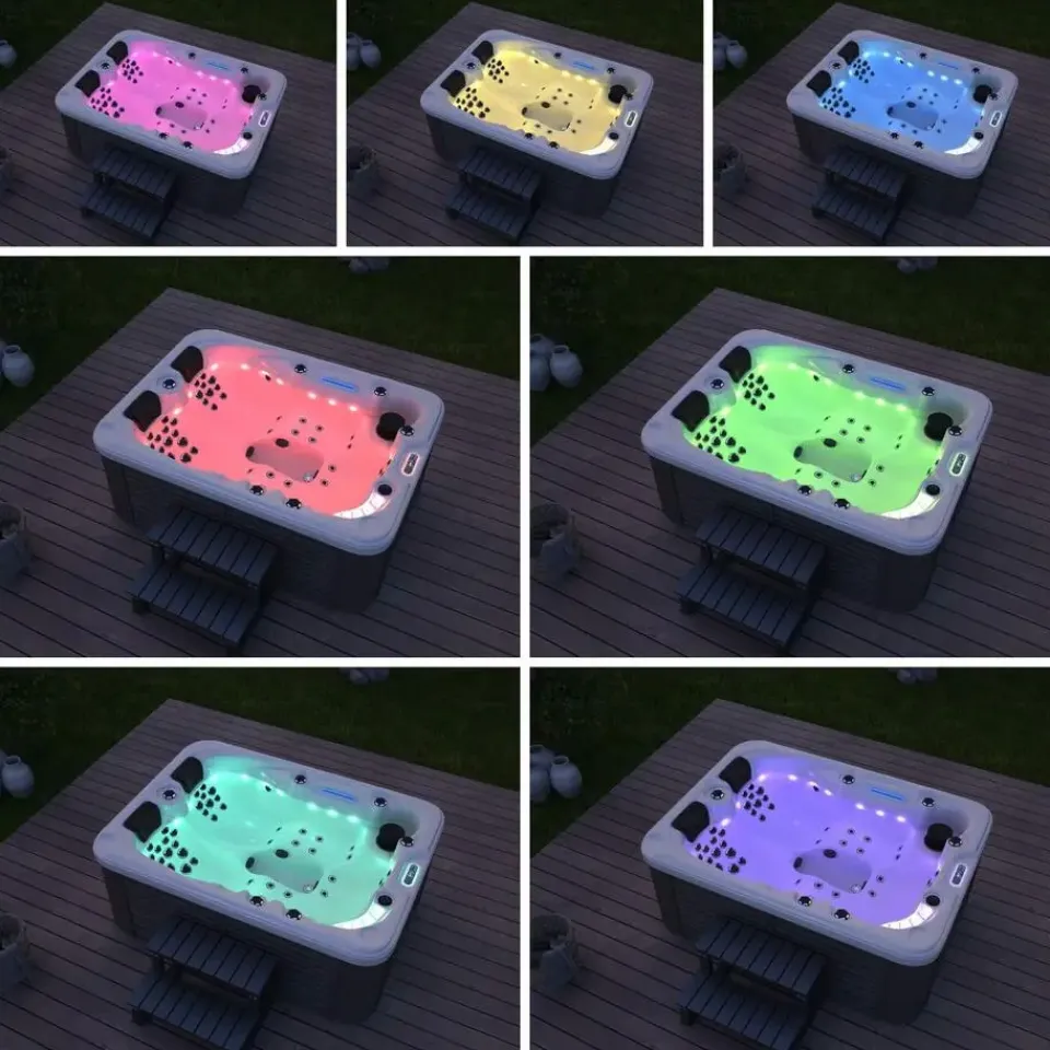 Laat je na een drukke dag verwennen door 51 massagestralen die je lichaam en geest revitaliseren. De individueel instelbare intensiteit en richting van de jets zorgen voor een persoonlijke ervaring. De compacte whirlpool past perfect in je tuin of op je terras en biedt een visueel hoogtepunt dankzij het hoogwaardige design en de technologie. 24 lichtbronnen, die optioneel in- en uitgeschakeld kunnen worden, zorgen voor een kleurenlichttherapie en een aangename sfeer. Ontspan niet alleen zittend, maar ook liggend dankzij de comfortabele zwarte hoofdsteunen.