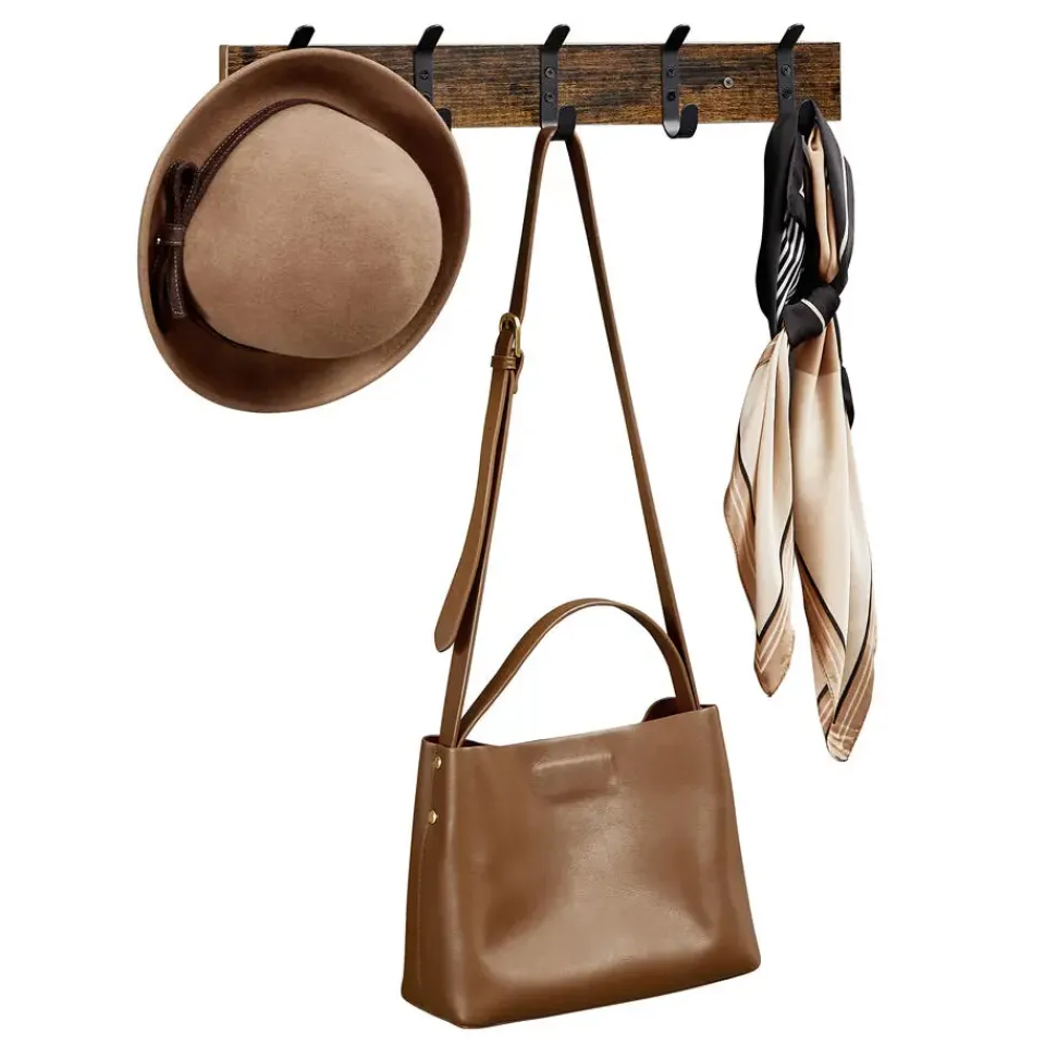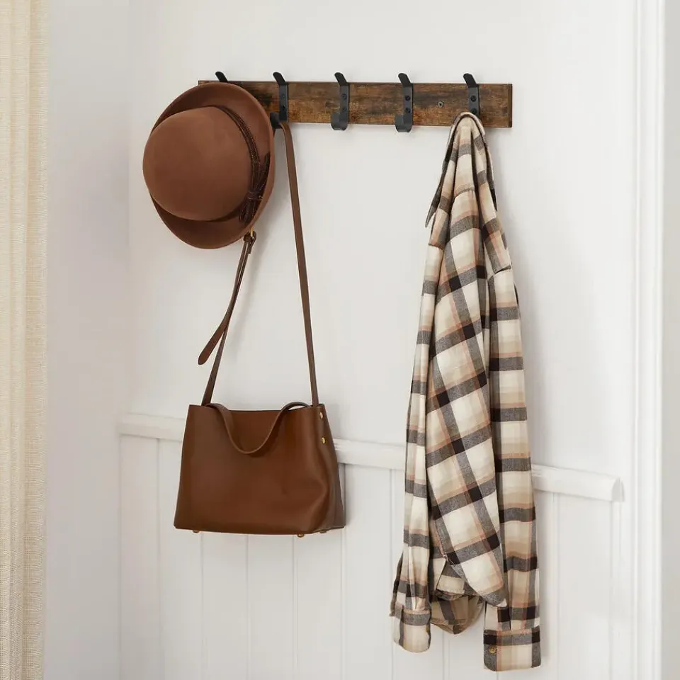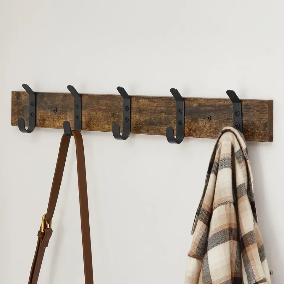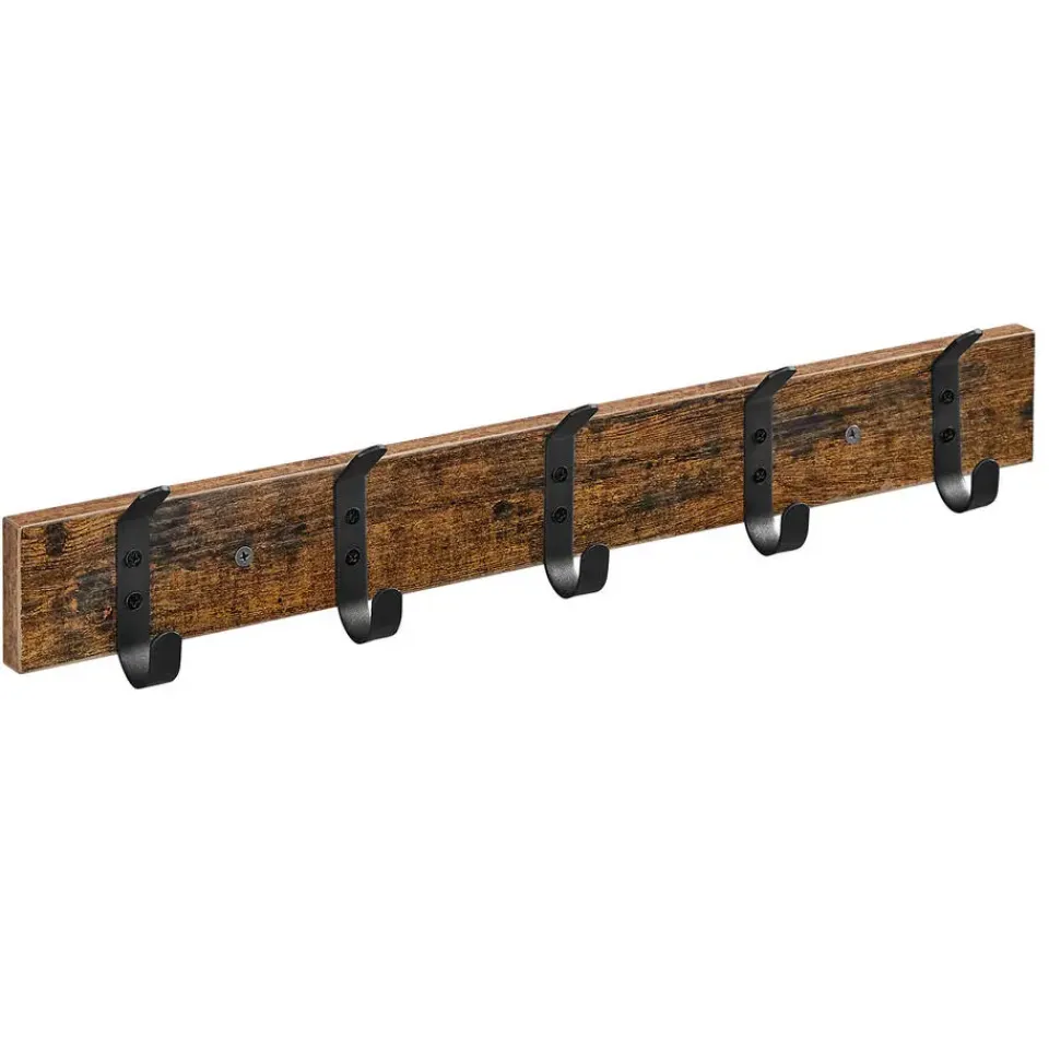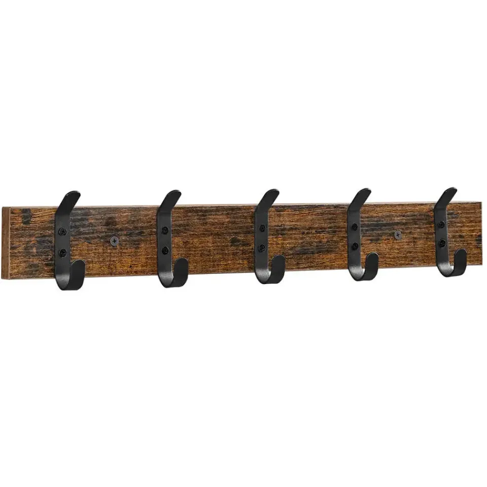 Merkloos Houten Wandkapstok met 10 Haken – Compacte Muur Kapstok – Vintage Bruin / Zwart Outlet