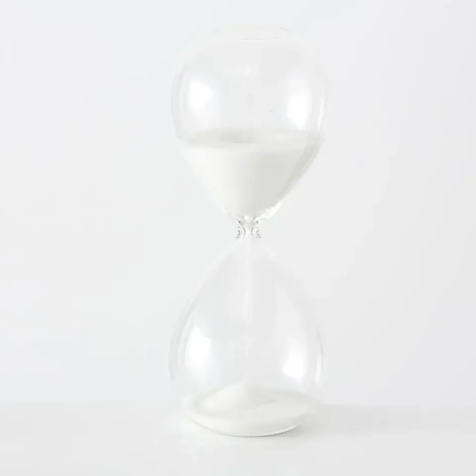 Decoratie zandloper wit zand 20 cm. Glazen zandloper met wit zand.