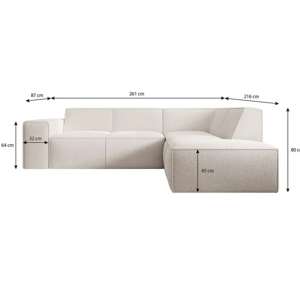 Hoekbank Monet is een hoekbank gemaakt van teddystof. Het is een L-vormige hoekbank geschikt voor 4 tot 5 personen. Beschikt over vaste zit- en rugkussens en een naar buiten gestikte naad op de randen. Het meubel wordt ongemonteerd geleverd. Je dient het dus met behulp van de bijgeleverde handleiding zelf in elkaar te zetten.