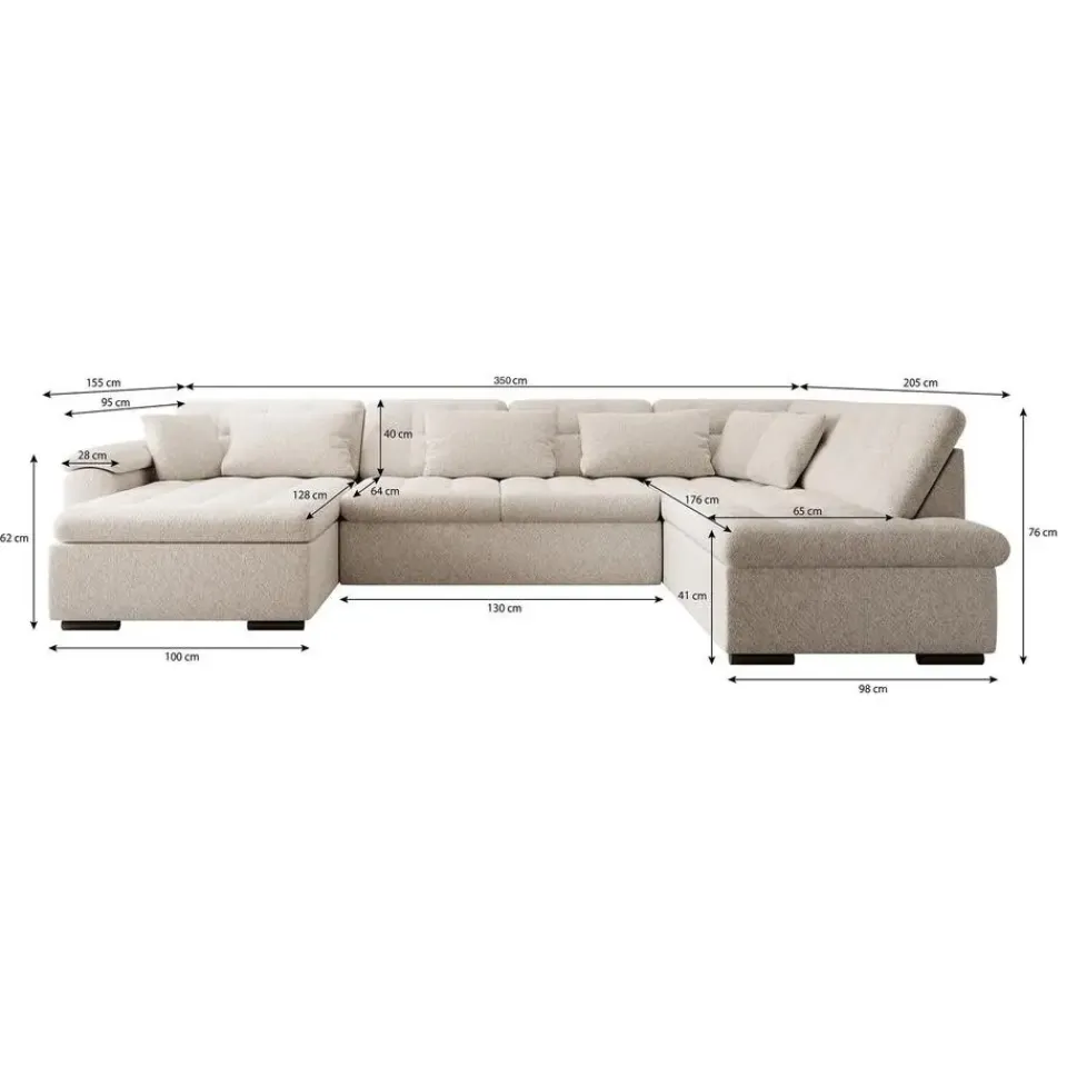 - H 76 x B 350 x D 202 cm