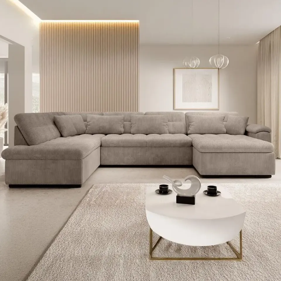 Hoekbank Nicoreta is gemaakt van een ribstof. De Nicoreta is een bank in U-vorm. Staat op lage, zwarte pootjes. Heeft vaste zit- en rugkussens. Inclusief bijpassende sierkussens. Het meubel wordt ongemonteerd geleverd. Je dient het dus met behulp van de bijgeleverde handleiding zelf in elkaar te zetten.