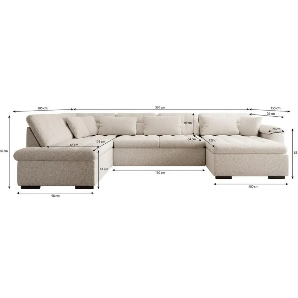 - H 76 x B 355 x D 205 cm