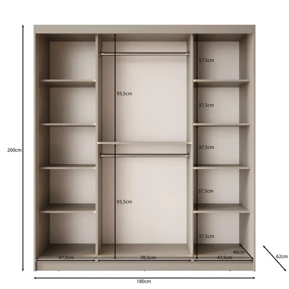 - H 200 x B 180 x D 62 cm