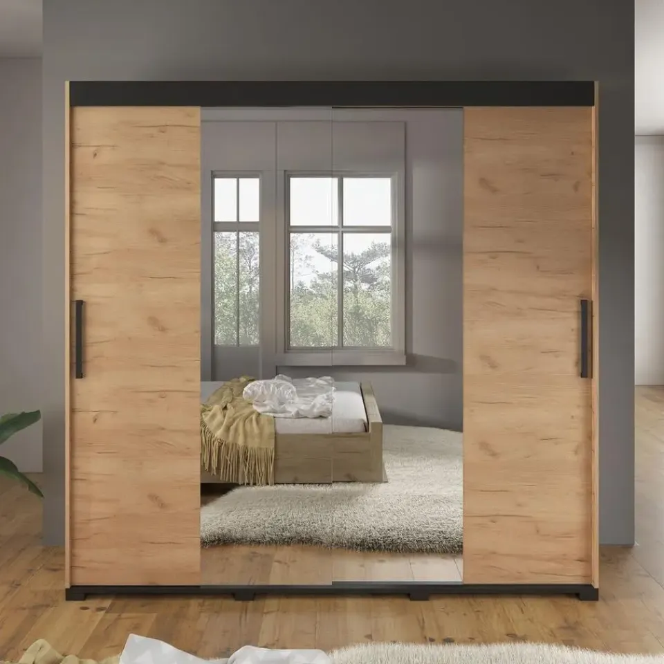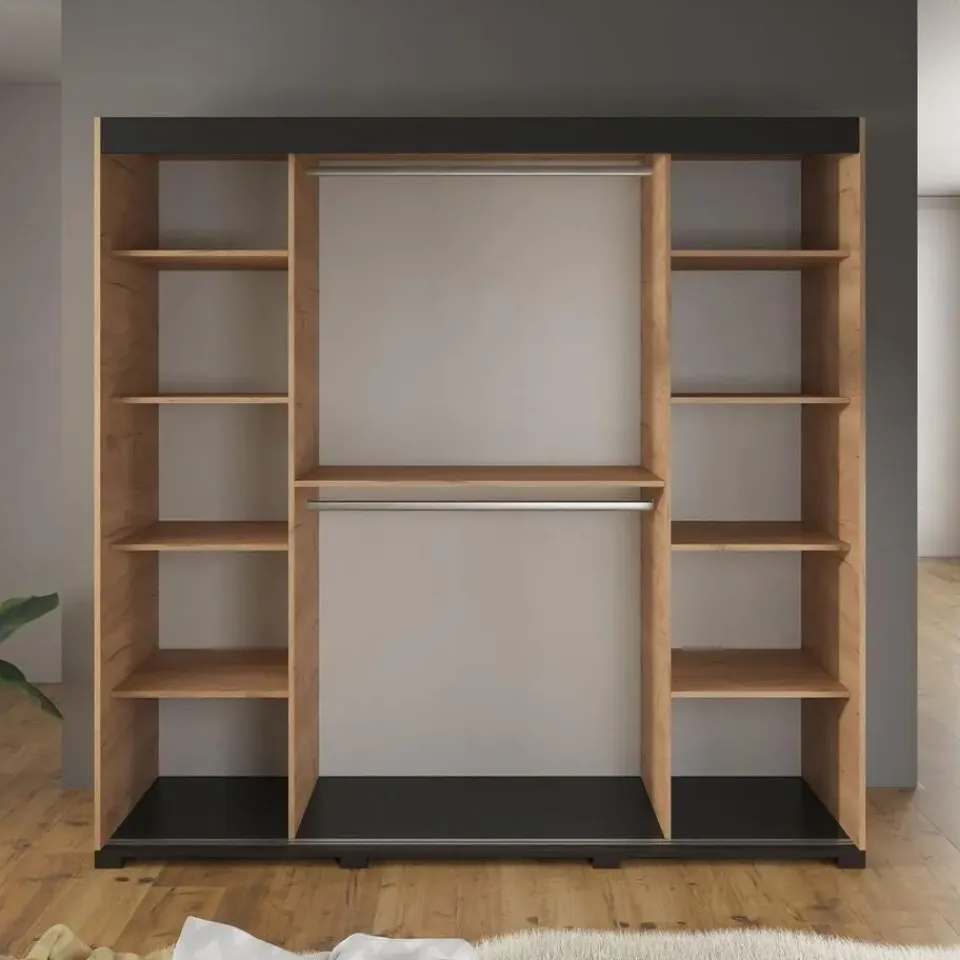 Kledingkast Brazil heeft 2 schuifdeuren die allebei zijn voorzien van een spiegel. De binnenkant bestaat uit 2 kledingroedes en 10 opbergvakken. Het meubel wordt ongemonteerd geleverd. Je dient het dus met behulp van de bijgeleverde handleiding zelf in elkaar te zetten.