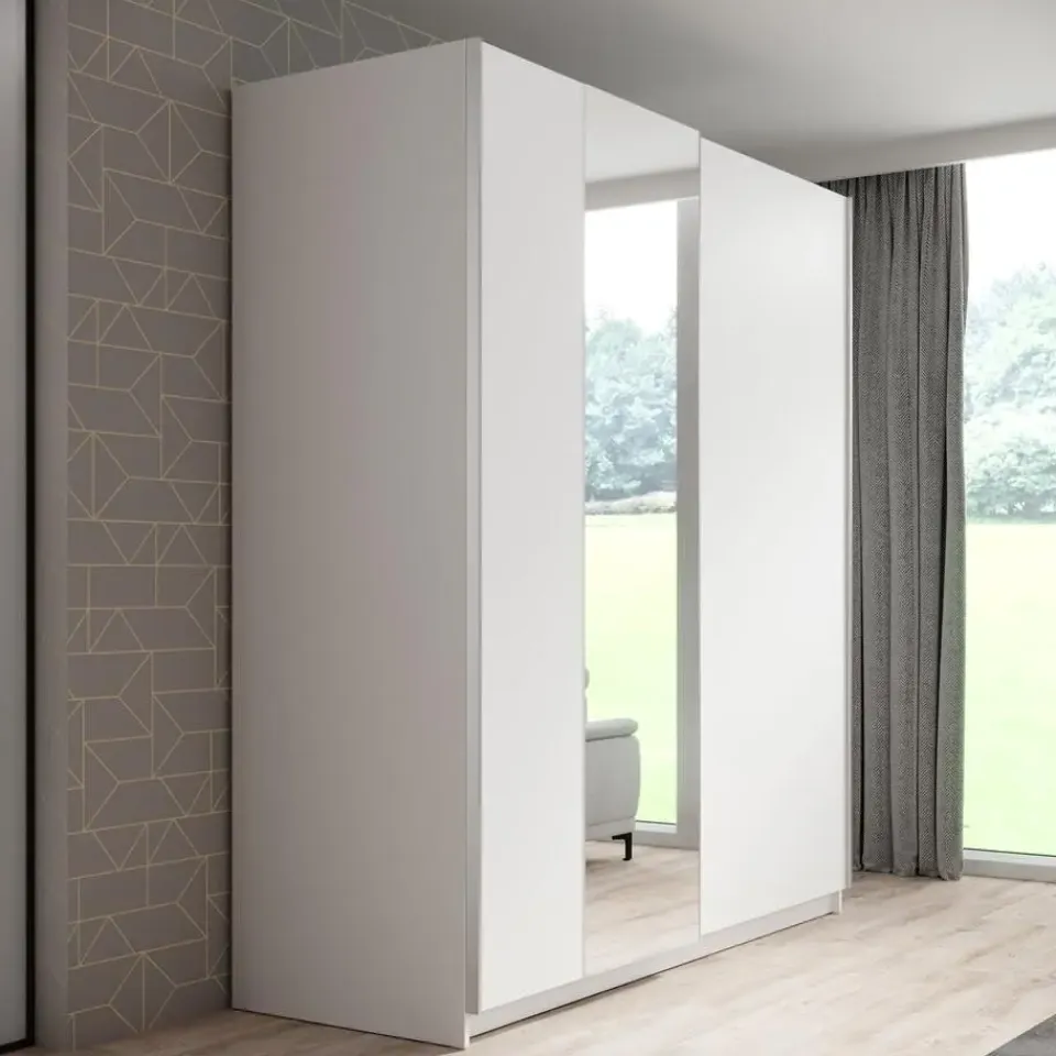 Kledingkast Ganaro beschikt over 2 schuifdeuren. Dankzij het schuifdeursysteem bespaar je ruimte in de kamer. De linkerdeur heeft een spiegel. De binnenkant bestaat uit 5 opbergvakken en 1 kledingroede. De kast is uitgevoerd in de kleur wit. Het meubel wordt ongemonteerd geleverd. Je dient het dus met behulp van de bijgeleverde handleiding zelf in elkaar te zetten.