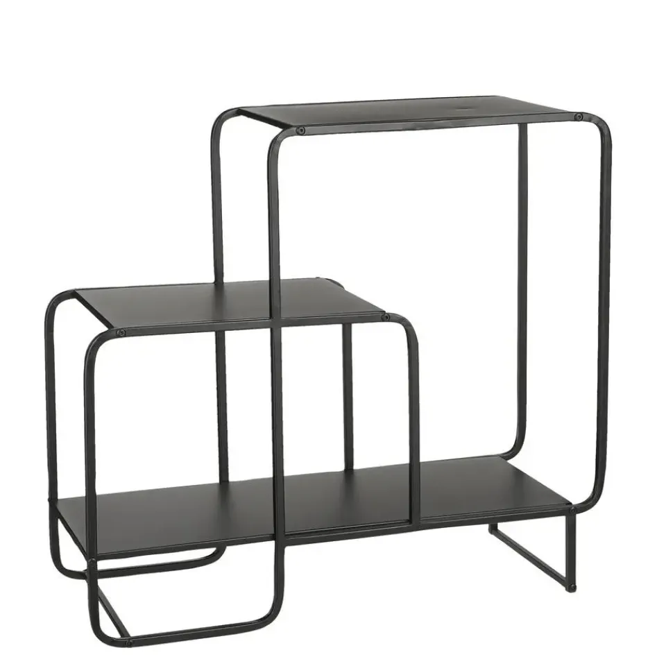 De Jules wandkast uit de collectie van Mica Decorations valt op door de drie tafelbladen in verschillende hoogtes die aan elkaar verbonden zijn.