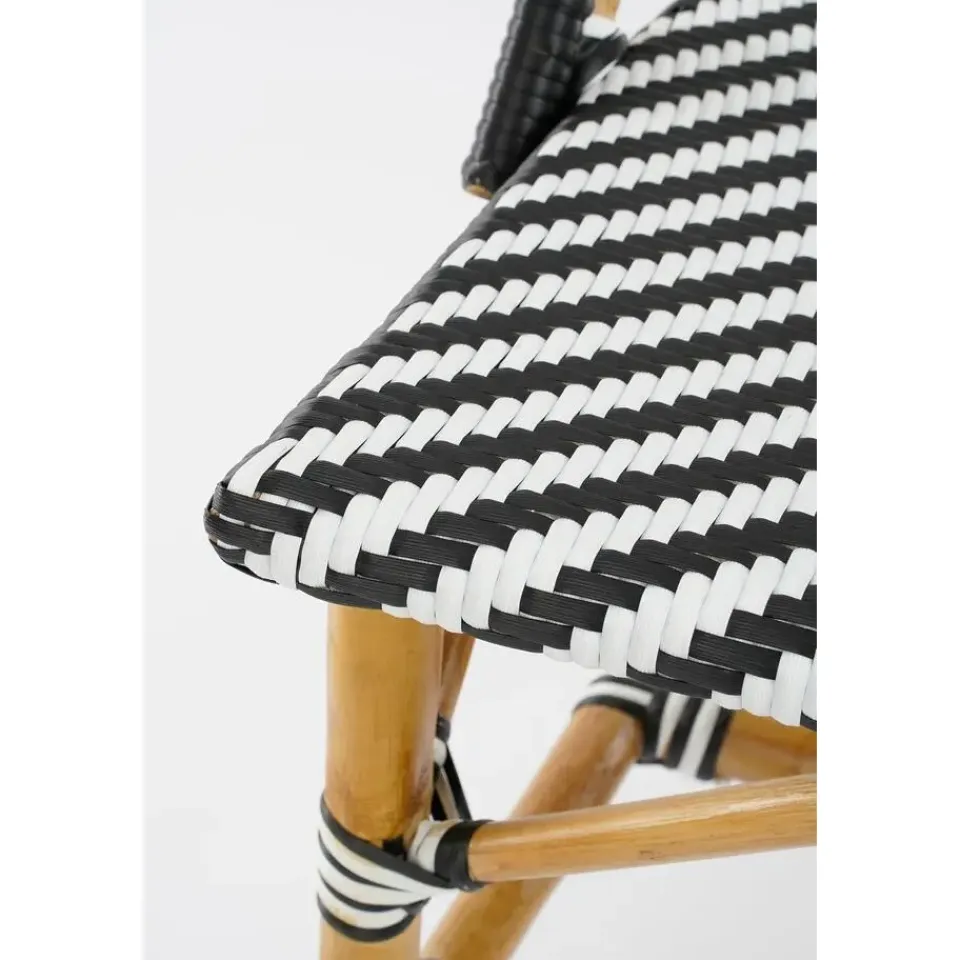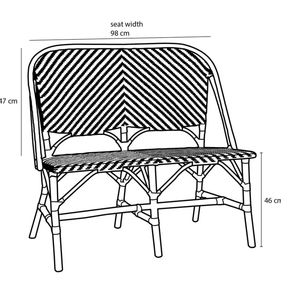 Met de Mandox bank van Mica Decorations breng je de Franse sferen naar jouw buitenruimte. De bank is namelijk gedeeltelijk gemaakt uit natuurlijk rotan en gevlochten synthetisch materiaal. Deze combinatie zorgt ervoor dat de bank niet alleen een blikvanger is, maar ook bestand is tegen weersinvloeden, waardoor je er seizoen na seizoen van kunt genieten. De bank heeft een klassiek ontwerp en een mooi zwart-wit patroon. Dit komt ook terug op de poten van de bank. Op de bovenkant van de rugleuning loopt een zwarte balk, mooi detail! De comfortabele bank heeft een zithoogte van 46 cm en de afmetingen L98 x B60 x H93 cm. De ideale toevoeging voor elke tuin of balkon. Ook leuk om te combineren met de andere artikelen van de Mandox-collectie van Mica Decorations.