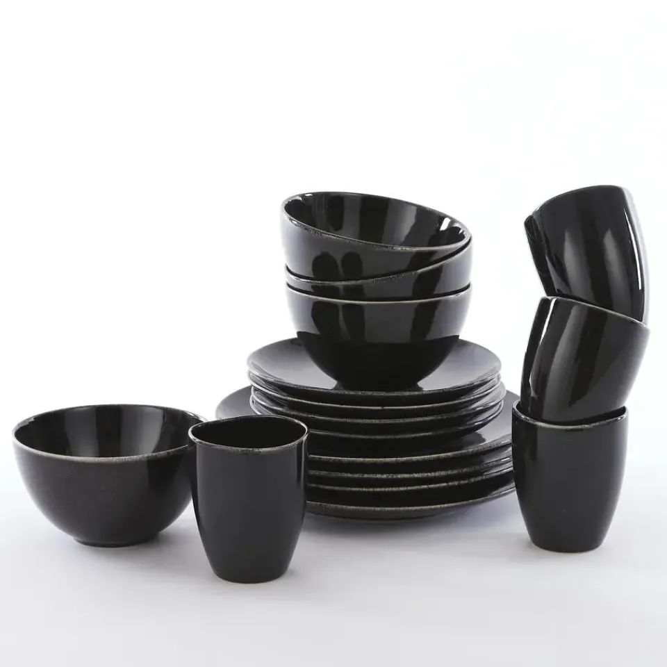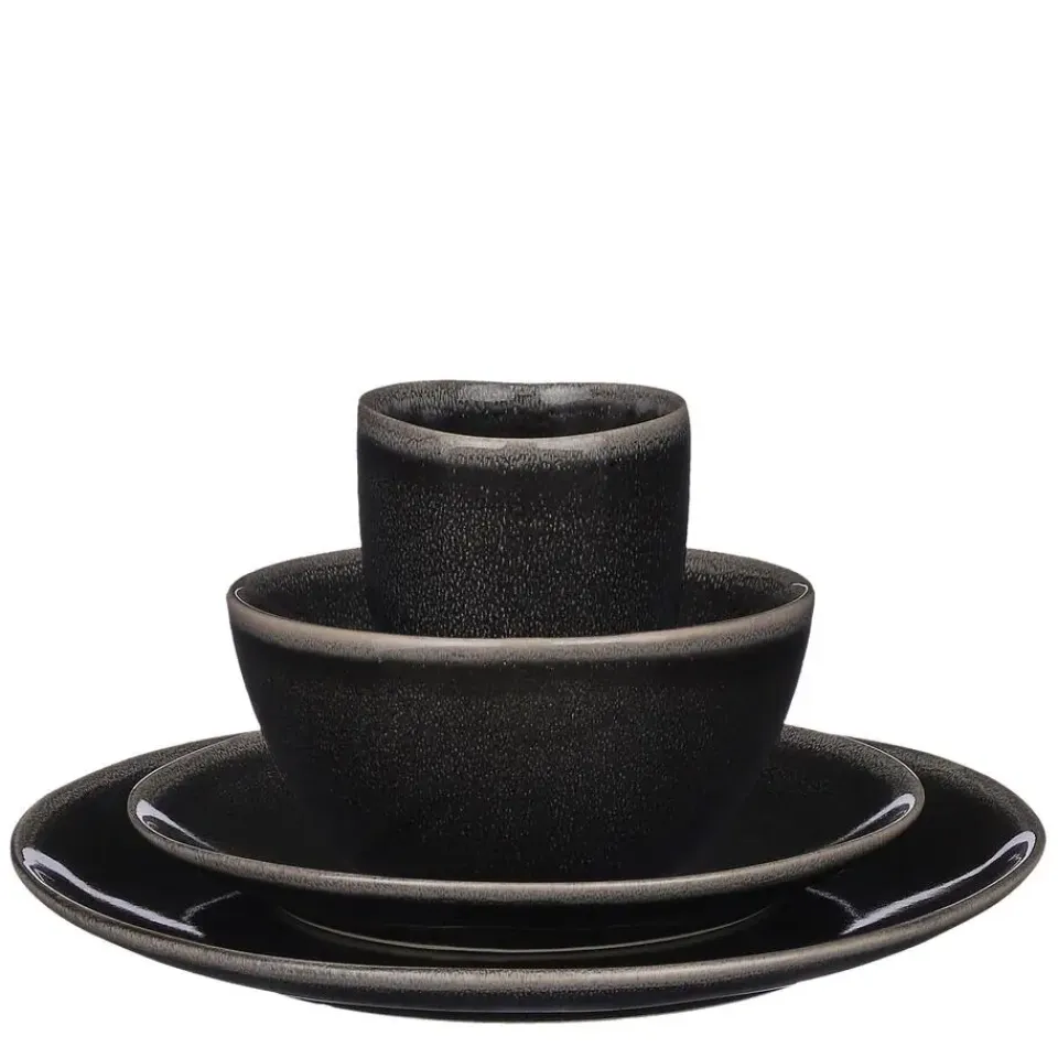 Rustiek en robuust, zo kan het Tabo servies van Mica Decorations het beste worden omschreven. Geen wit porselein met saaie volmaakte lijnen, maar handgemaakte producten van keramiek in neutrale tinten. Elk met een eigen, authentieke look die past bij puur genieten. Waarom zou je voor één item gaan als je ook voor de hele set kan gaan? Deze Tabo serviesset bestaat uit 16 delen en is geschikt voor 4 personen. De set telt 4 mokken van H10,5 x Ø8 cm, 4 schaaltjes van H8 x Ø15 cm, 4 kleine borden van Ø20,5 cm en 4 dinerborden van Ø26 cm. Geen zorgen, elk serviesstuk kan zowel in de vaatwasser als in de magnetron worden gezet en is hittebestendig tot 180°C. Daarnaast zorgt de moderne, zwarte kleur direct voor een stoere uitstraling.
