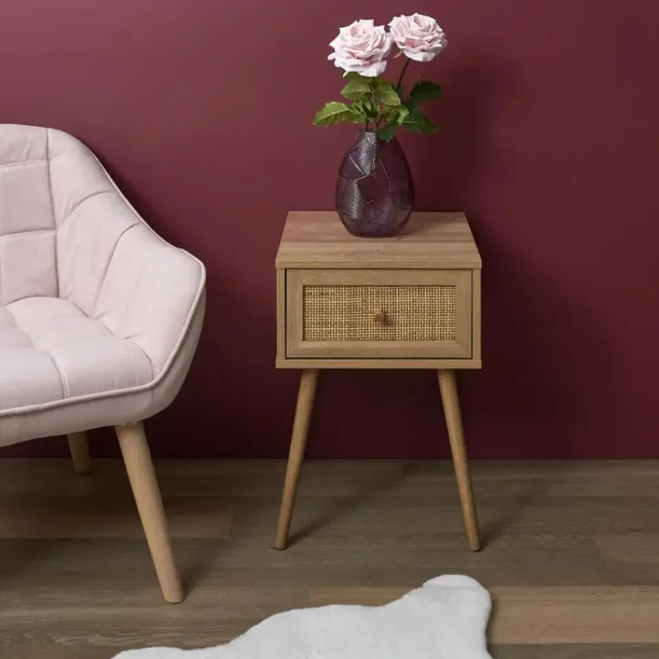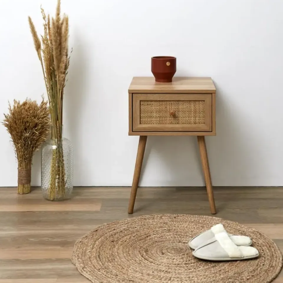 Voeg een vleugje natuurlijke elegantie toe aan je slaapkamer met de MISOU Nachtkastjes met Lade, een set van 2 stuks, vervaardigd van rotan webbing en hout. Deze nachtkastjes combineren functionaliteit met een eigentijds design, waardoor ze perfect zijn voor het opbergen van je essentials naast je bed.