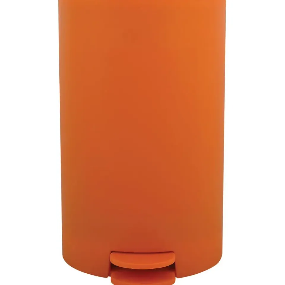 Pedaalemmer voor badkamer en toilet, klein model met inhoud 3 liter, kleur oranje. Deze prullenbak is gemaakt van kunststof(polypropyleen) en heeft een formaat van ca. L15 x H27 cm. Deze kleine pedaalemmers hebben een uitneembare binnenbak. De deksel heeft dezelfde kleur. Robuust en makkelijk te legen. Afvalemmers, pedaalemmers en prullenbakken.