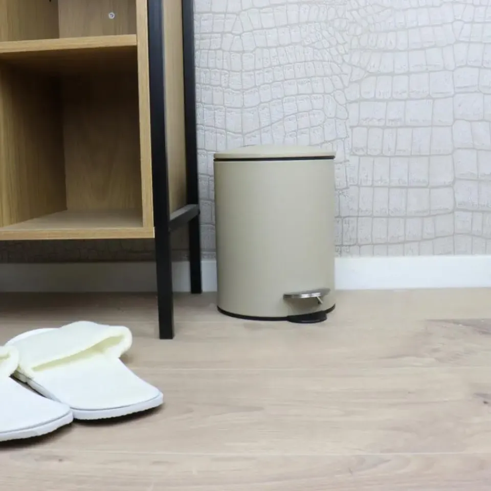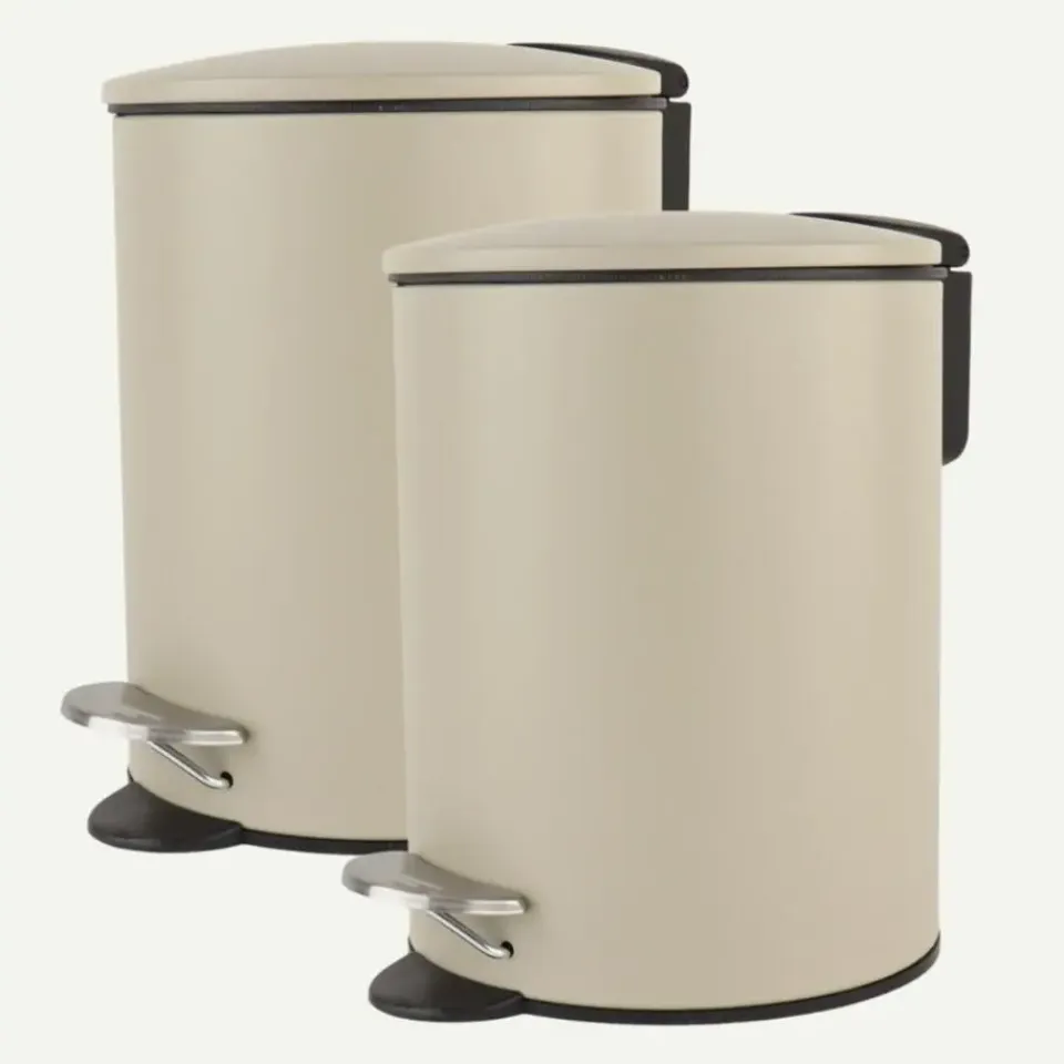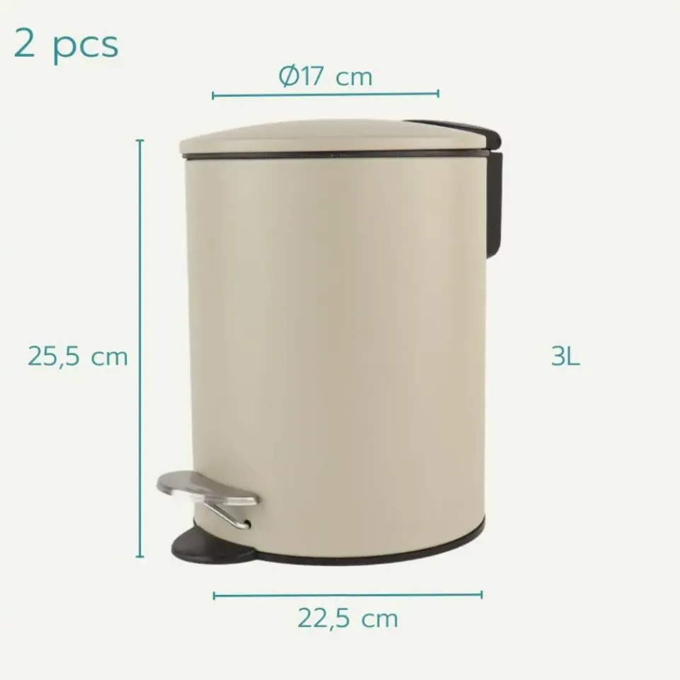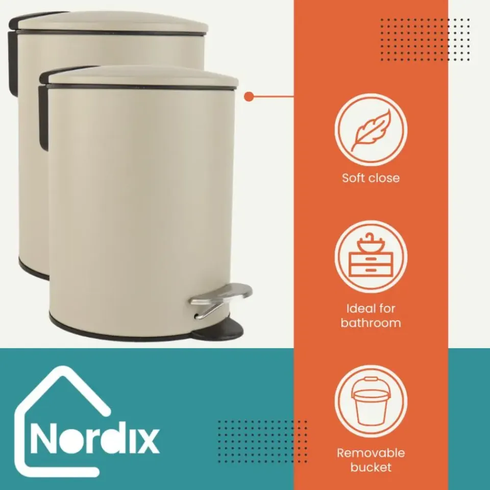 De Nordix Pedaalemmer is een stijlvolle en functionele toevoeging aan elke badkamer of toilet. Met een capaciteit van 3 liter biedt deze pedaalemmer voldoende ruimte voor afval zoals tissues, wattenstaafjes en andere kleine items. De elegante beige metalen constructie past perfect bij elke interieurstijl en voegt een vleugje verfijning toe aan de ruimte. Dit product word in een set van 2 stuks bezorgd.