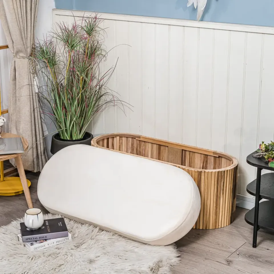 De BAOTSU Scandinavische designbank met opbergruimte heeft alles wat nodig is om uw interieur te verfraaien. Of het nu in uw slaapkamer, kantoor, woonkamer of hal is, het zal zijn plek vinden. De ronde zitting, gevuld met premium stof en een superieure dichtheid schuim, biedt een hoogwaardig comfort. De eenvoudige en praktische opbergruimte stelt u in staat om allerlei soorten voorwerpen neer te leggen. De bank is gemakkelijk te onderhouden, een vochtige doek is voldoende om schoon te maken.