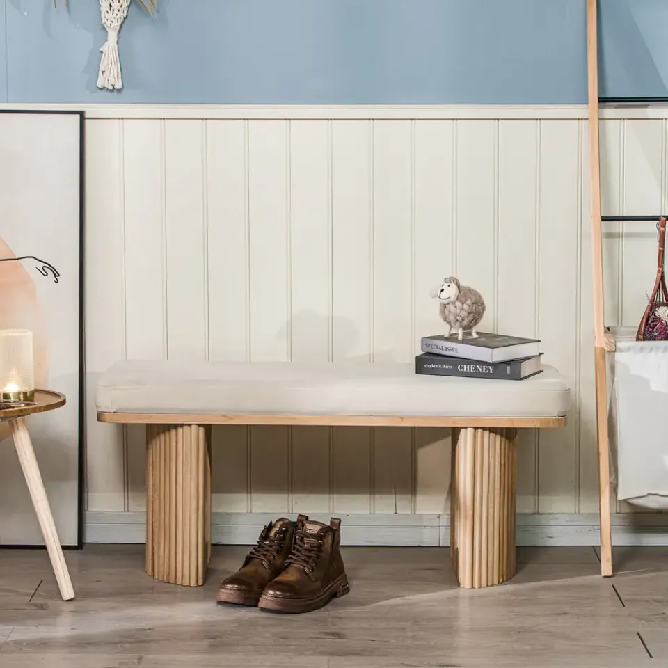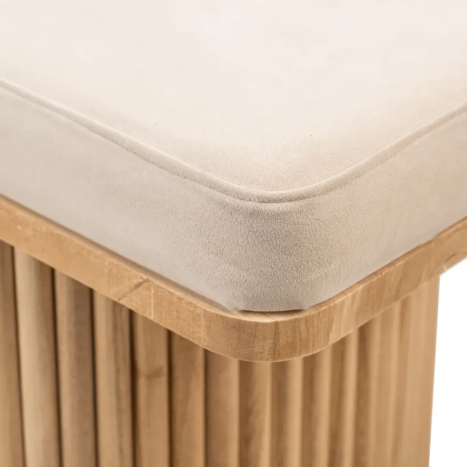 De Banc Entrée Chambre Scandinave Bois velours beige is een prachtige toevoeging aan uw interieur. Met zijn strakke Scandinavische design past hij perfect in elke kamer, of het nu de slaapkamer, kantoor, woonkamer of entree is. De ronde zitting van massief hout biedt een hoog comfort. De stevige structuur van gecertificeerd FSC essenhout zorgt voor stabiliteit en duurzaamheid. Dit product is gemakkelijk te onderhouden, een vochtige doek is voldoende om het schoon te maken.