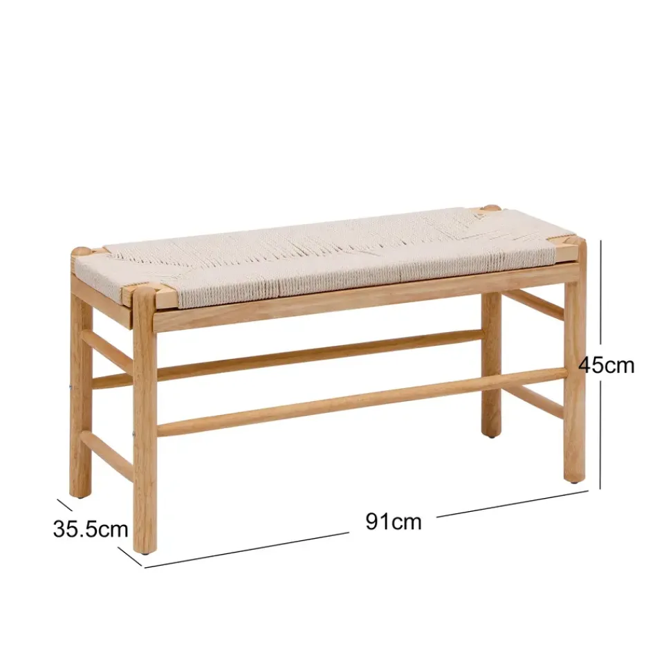 Productafmetingen = 90 x 35 x 45.5,5 cm / Zithoogte = 45.5,5 cm / Zitdiepte = 35 cm / Productgewicht = 5,5 kg / Totaal gewicht van het pakket = 6,5 kg / Maximaal ondersteund gewicht = 120 kg / Product moet worden gemonteerd = Ja / Stapelbaar product = Nee / Certificering 1 = Duurzaam FSC-gecertificeerd hout / Houtafwerking = Natuurlijke kleur.