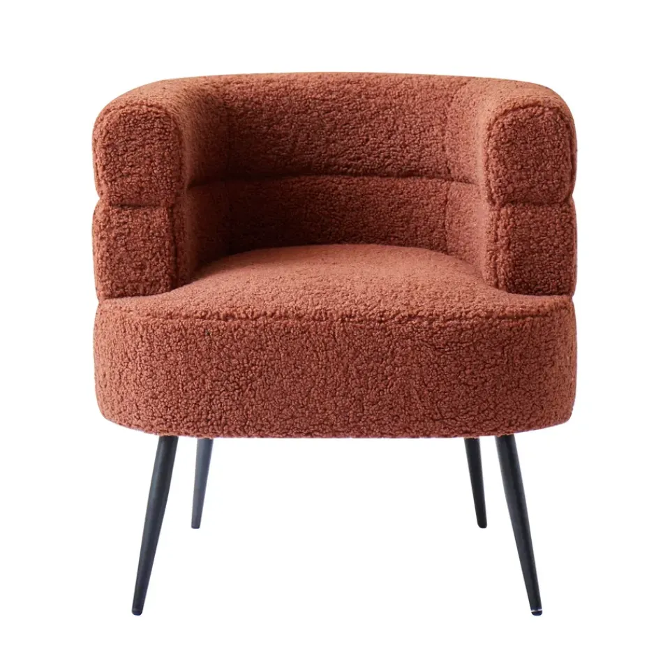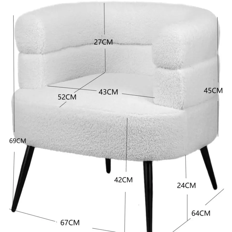 De Scandinavische Design Fauteuil met Metalen Poten is een moderne fauteuil die uw interieur zal verfraaien. Of het nu in uw slaapkamer, kantoor of woonkamer is, deze fauteuil zal zijn plek vinden. De brede rugleuning biedt een hoogwaardige ondersteuning. De premium bekleding van wol/bont met een superieure densiteit schuim biedt een hoogwaardig zitcomfort. De zwarte epoxy metalen poten zorgen voor stabiliteit en stevigheid voor langdurig gebruik. De fauteuil is gemakkelijk te onderhouden, een vochtige doek is voldoende om schoon te maken.