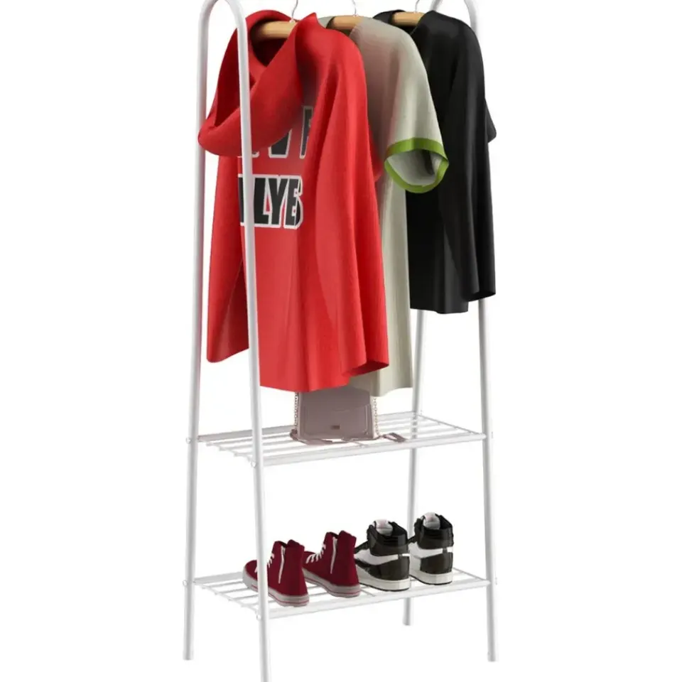 Dit kledingrek is voorzien van een stevige metalen stang waarop je moeiteloos kleding kunt ophangen, zoals jurken, blouses, jassen of overhemden. Daarnaast biedt de ingebouwde roosterplank onderaan extra ruimte voor het opbergen van schoenen, dozen of accessoires. Het kledingrek helpt je een overzichtelijke ruimte te creëren en voorkomt dat kleding blijft rondslingeren.