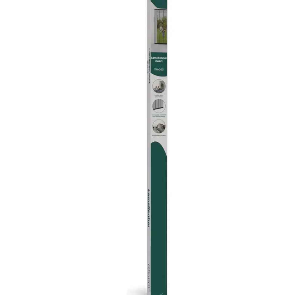 Bevestig de hor op de deurpost – Plak de strip met de lamellenhor op de juiste hoogte op de deurpost. Controleer of alles stevig vastzit en of de lamellen vrij kunnen bewegen.
