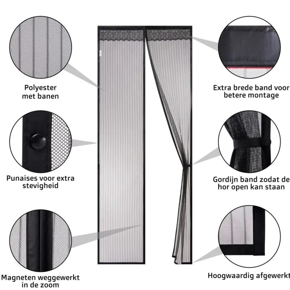 De O’DADDY deurgordijn deluxe is het vliegengordijn die niet openwaait! Bij deze magneet hor zijn er magneten gebruikt over de gehele hoogte welke onzichtbaar zijn weggewerkt in een zoom, dan kan je ook niet achter de magneten van het insectenhor blijven hangen. Door deze constructie sluit de horgordijn voor deur sneller, beter en zal deze niet meer openwaaien. Daarbij komt dat dit magneetgordijn huisdier, rolstoel en kindvriendelijk is, zelfs als je huisdier er enthousiast doorheen vliegt.