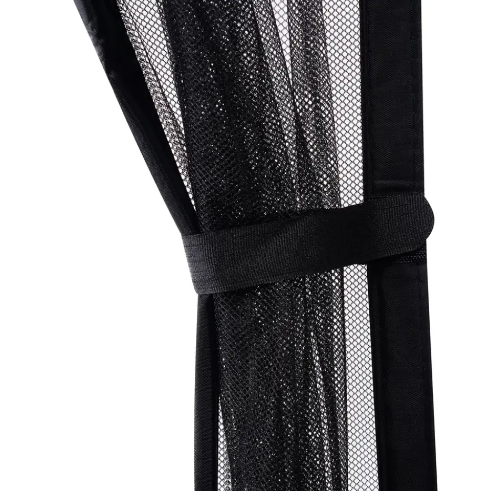 - Er zijn aan weerszijde gordijnhouders met klittenband bevestigd waardoor je de hor optioneel open kan laten staan.