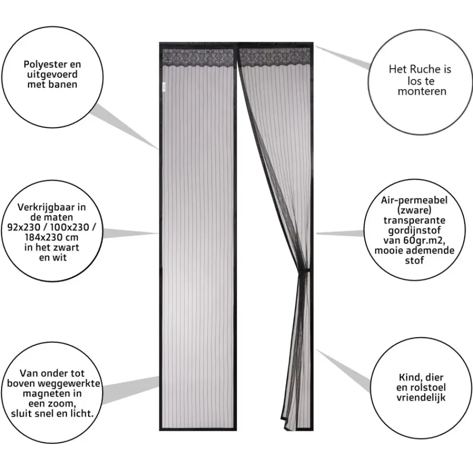 - OOK Verkrijgbaar voor dubbele openslaande deuren (184 x 230 cm in zwart en wit polyester)