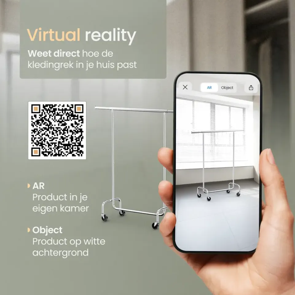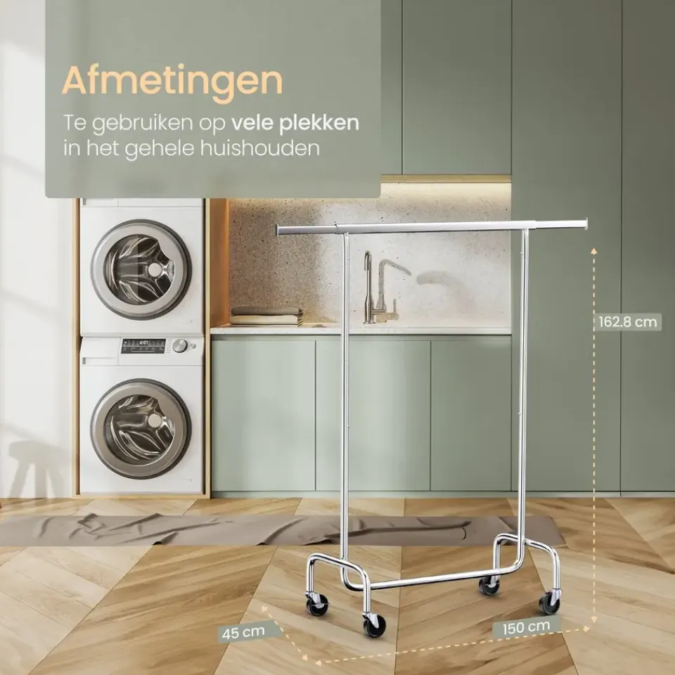 Dankzij het slimme ontwerp is dit kledingrek eenvoudig te monteren. Je hebt geen gereedschap nodig en binnen enkele minuten is het rek klaar voor gebruik. Dit maakt het ook ideaal voor situaties waarin je snel extra hangruimte nodig hebt, handig toch?