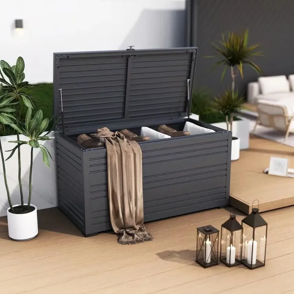 De Orion Sit & Store is dé robuuste en stijlvolle oplossing voor al uw opbergwensen in de tuin of op uw terras. Of u nu tuinkussens, gereedschap of andere accessoires wilt opbergen, deze opbergbox biedt een ruime en onderhoudsarme opslagoplossing die jarenlang meegaat. Daarnaast is deze opbergbox voorzien van gasveren die de deksel automatisch voor u openhouden. Tevens beschikt deze opbergbox over een geïntegreerd slot met 2 sleutels.