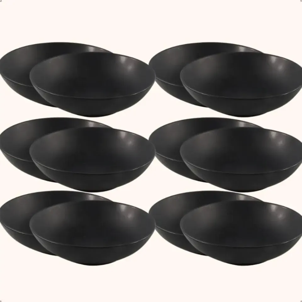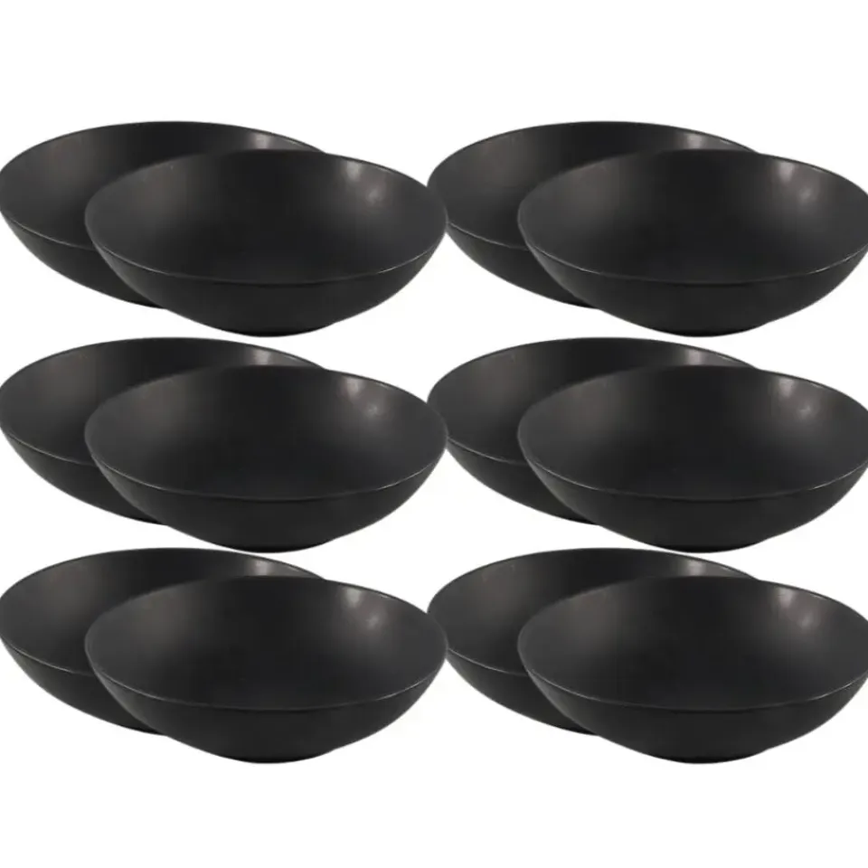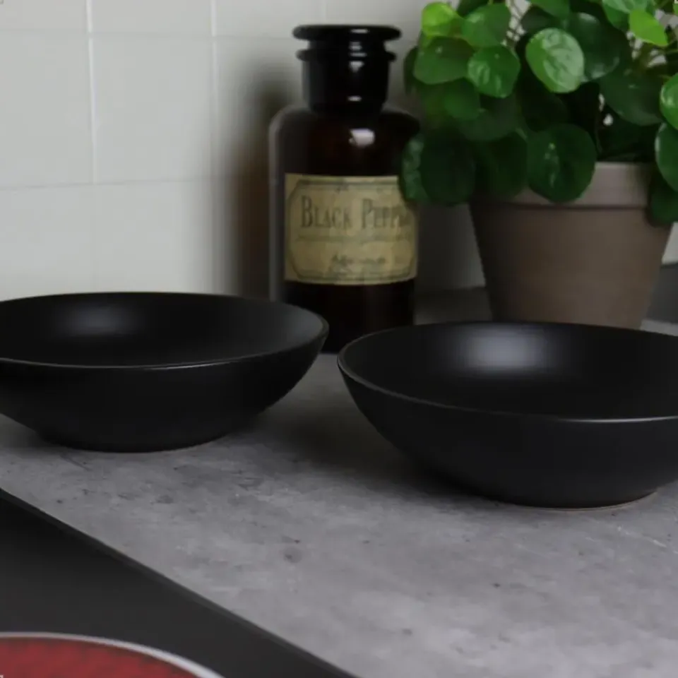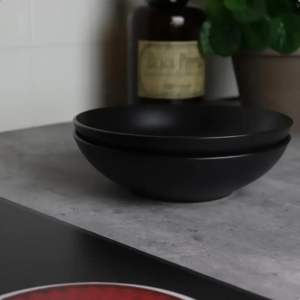 Deze OTIX borden set bestaat uit 12 diepe borden. De diepe borden zijn mat zwart en gemaakt van aardewerk. De diameter van de borden is 20,5 centimeter. De borden zijn diep en geschikt voor pastagerechten of soep.