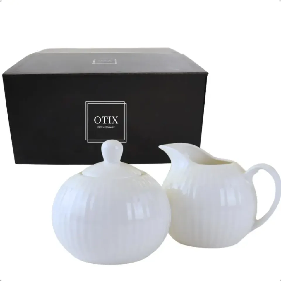 De OTIX Melk en Suiker Set LUNA is een verfijnde set van een melkkan en suikerpot, ontworpen om je tafelsetting compleet te maken. Gemaakt van hoogwaardig wit porselein, biedt deze set een elegante en functionele oplossing voor het serveren van melk en suiker tijdens je koffie of thee.