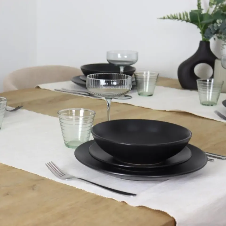 OTIX Ontbijtborden Bordenset van 12 Stuks 21cm Zwart Aardewerk IVY Hot